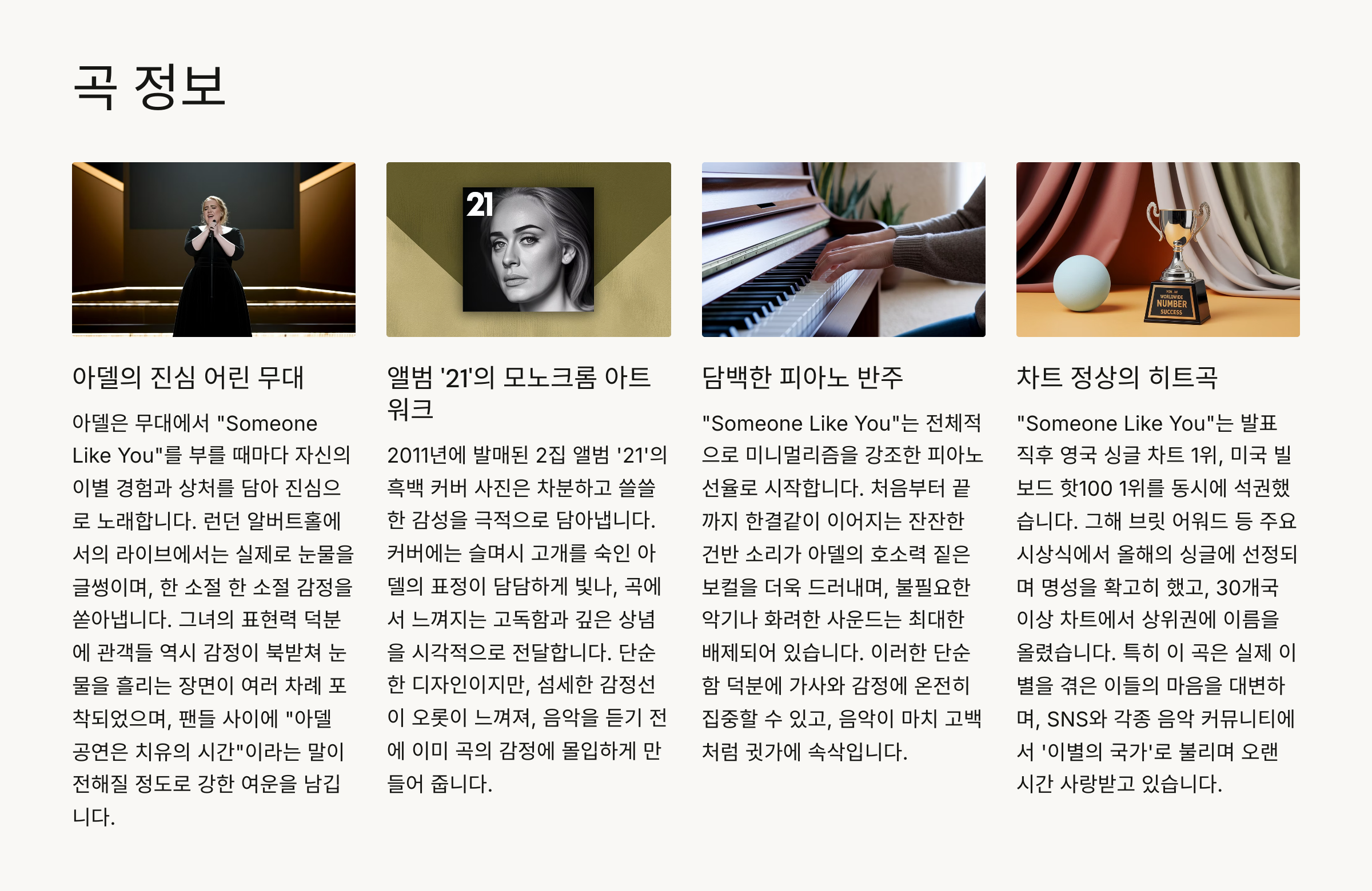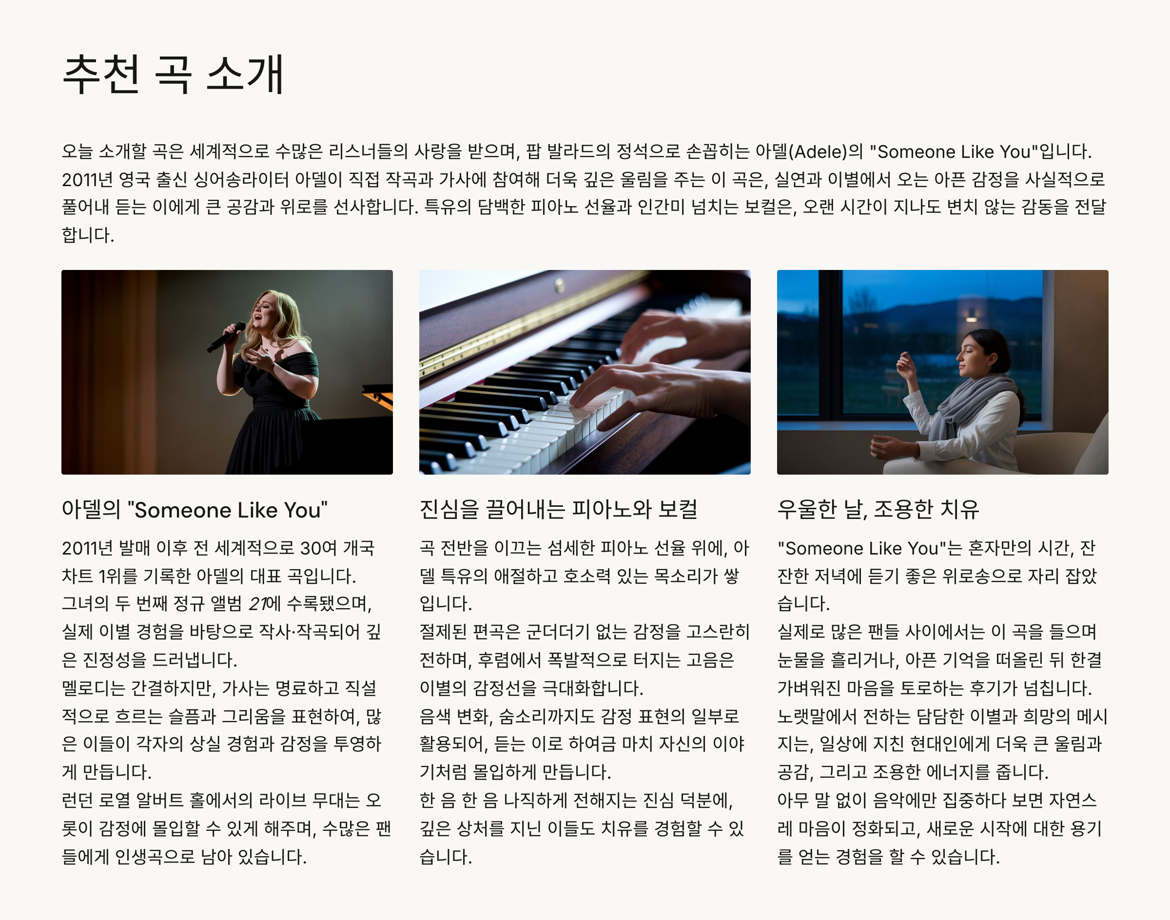 오늘 소개한 아델의 "Someone Like You"는 그런 곡입니다. 누군가를 놓아주고도 여전히 그리워하는 마음, 그럼에도 괜찮다고 말해