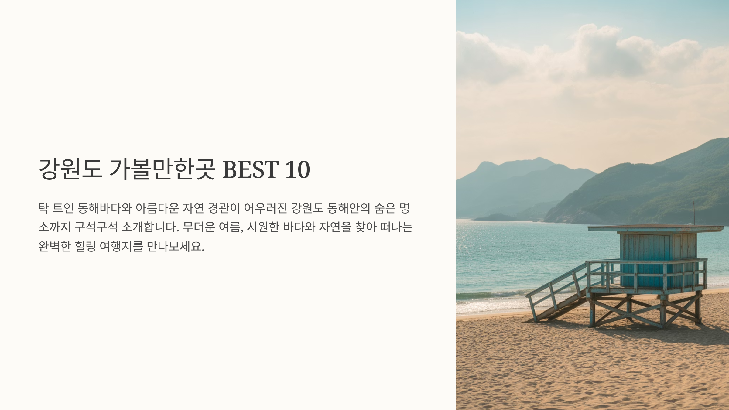 이번 포스팅에서는 유튜브 영상 [동해안 양양] 숨은 명소까지 구석구석, 강원도 가볼만한곳 BEST 10을 바탕으로, 실제로 여행 시