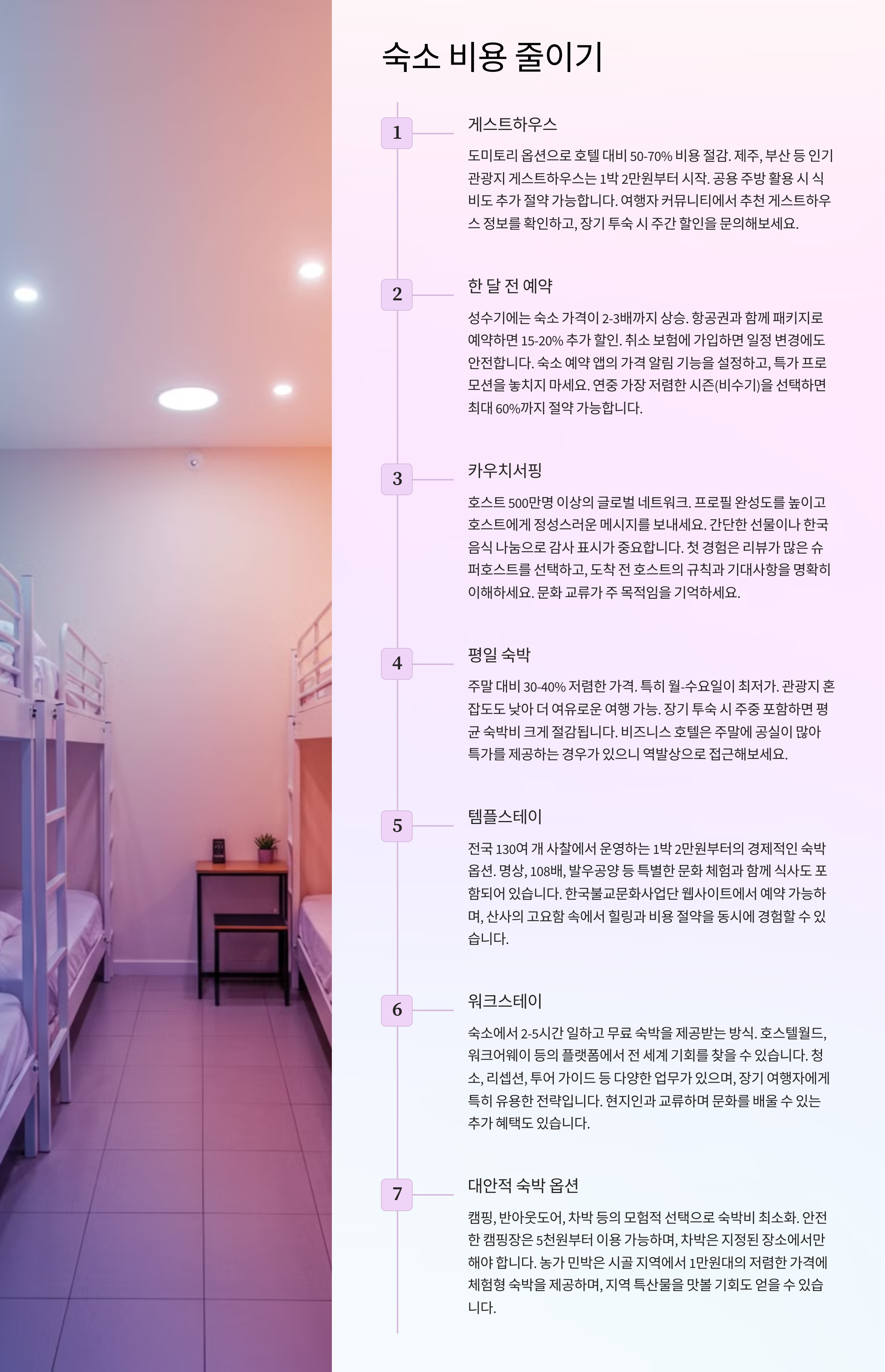 숙소 비용도 여행 경비에서 큰 비중을 차지하죠. 하지만 조금만 신경 쓰면 저렴하면서도 괜찮은 숙소를 찾을 수 있어요.