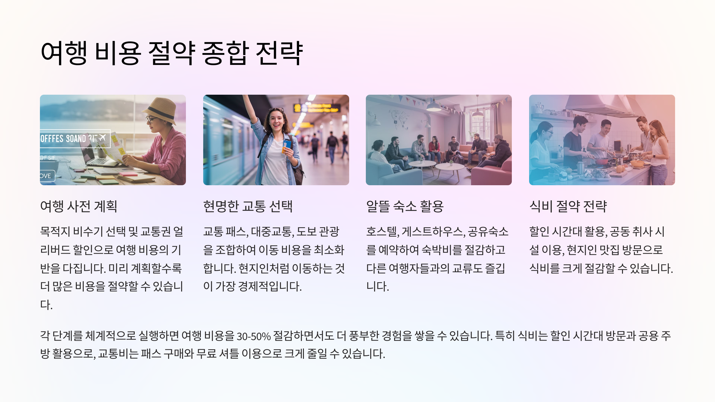 | 심야 버스 이용 | 야간 이동으로 숙박비 절약 가능 |