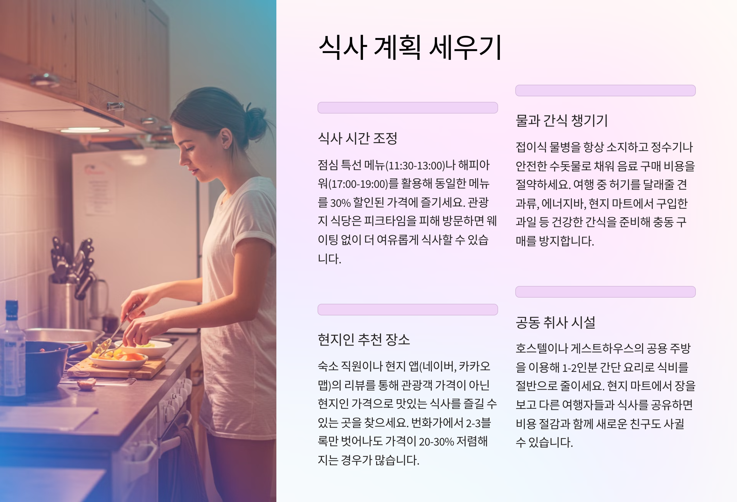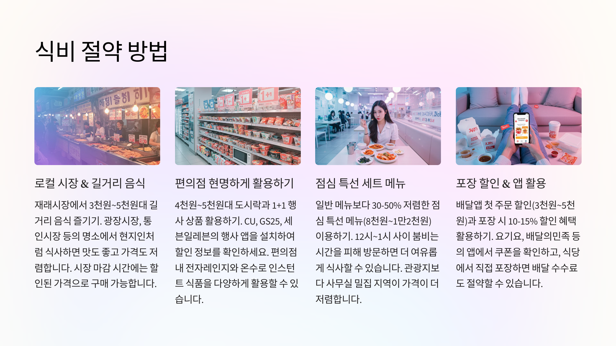 여행 중 맛있는 음식을 포기할 수는 없죠. 하지만 비용을 아끼면서도 맛있게 먹을 수 있는 방법이 있습니다.