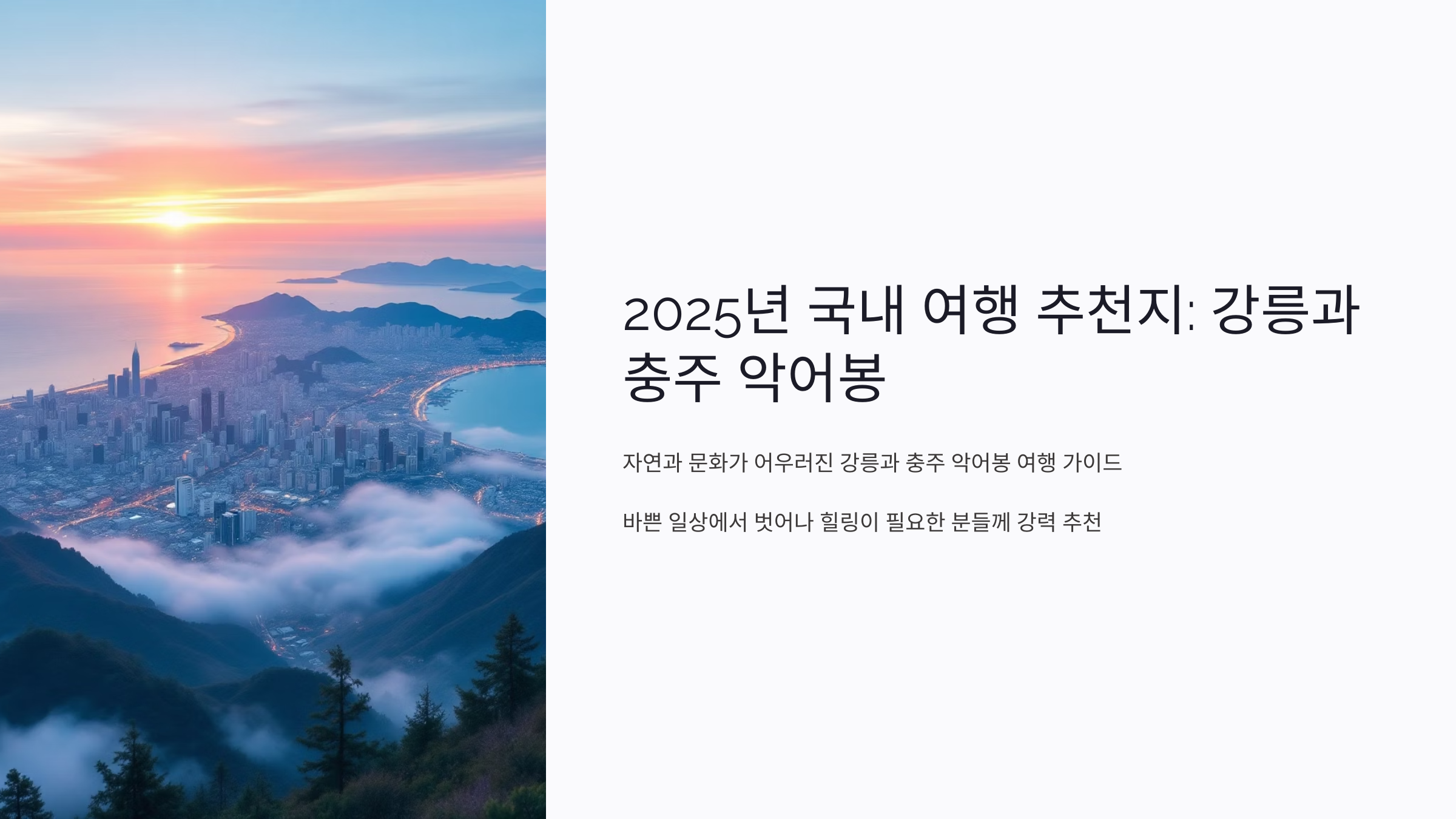 2025년 국내 여행 추천지: 강릉과 충주 악어봉 완벽 가이드