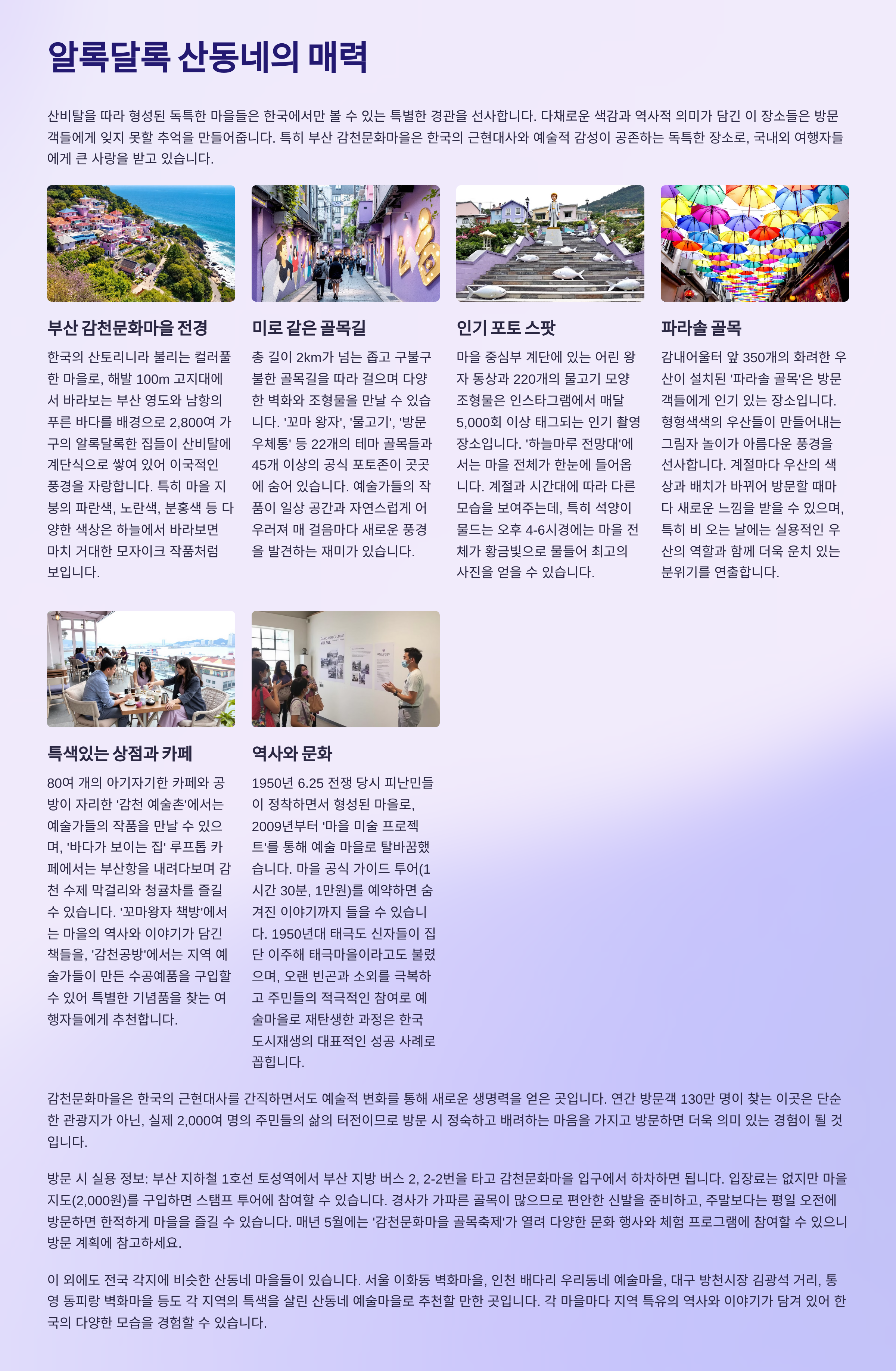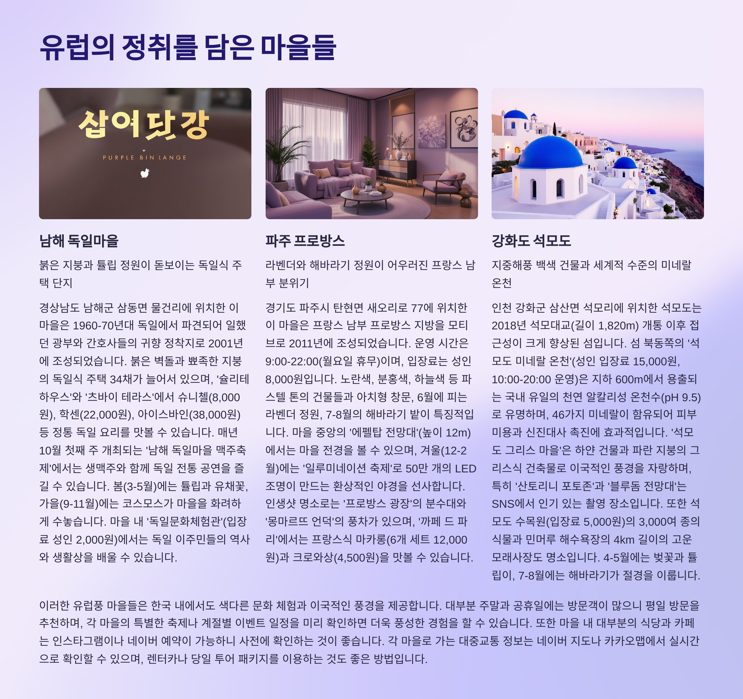 해당 유튜브 영상에서는 각 여행지의 실제 모습과 분위기를 영상으로 담아 더욱 생생하게 전달하고 있습니다. 아래 버튼을 클릭해 지금 바로 확인해 보세요.