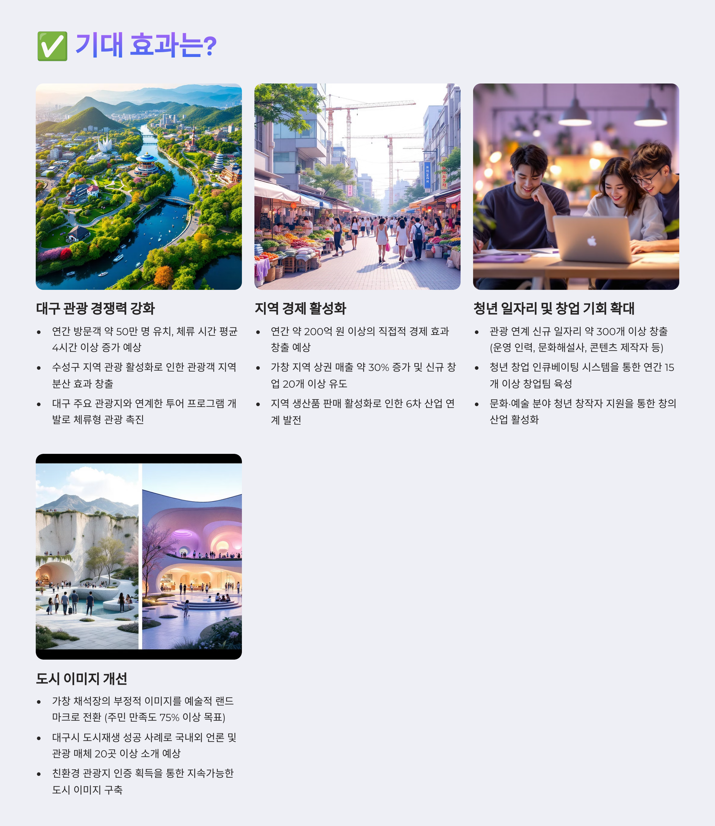 또한 관광객 유입을 통한 지역 경제 활성화, 일자리 창출, 청년 정착 유도 등 다양한 긍정적 효과가 예상됩니다.