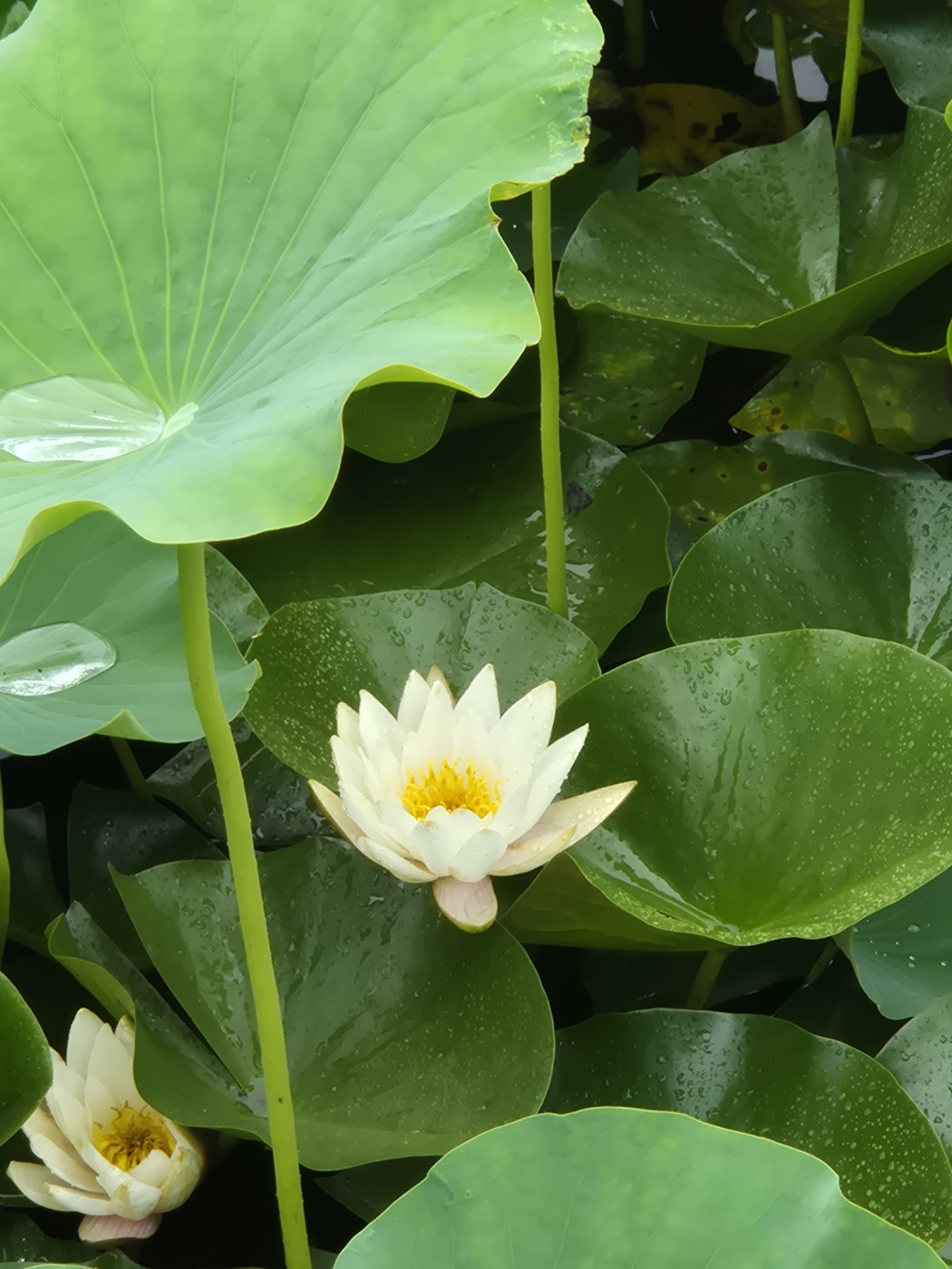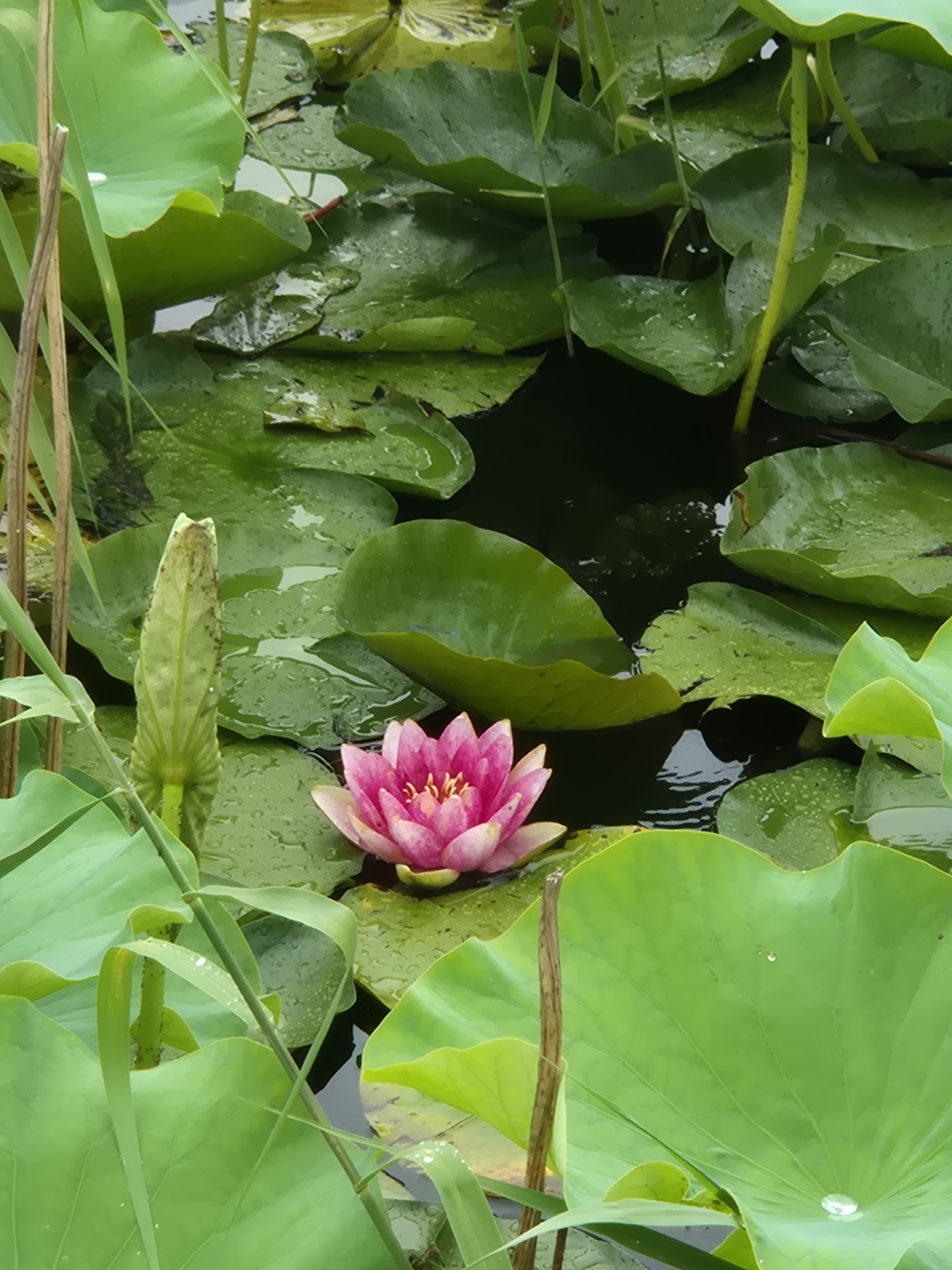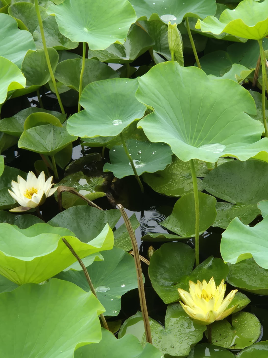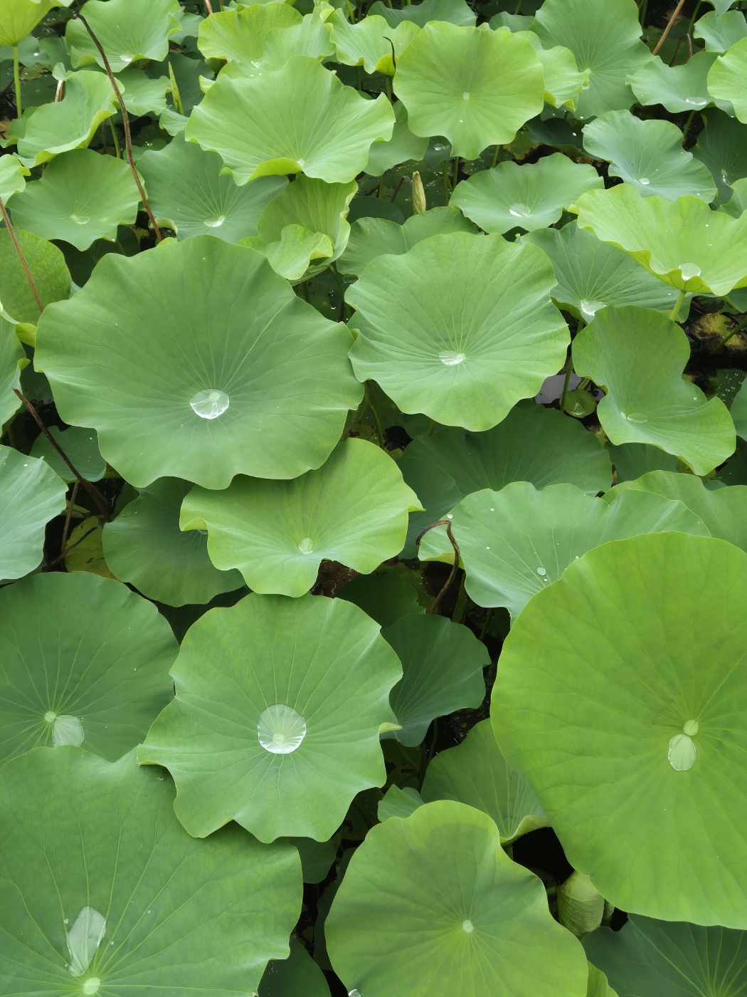 비가 와서 그런지 연꽃잎에 잎마다 물방울을 머금고 있네요.