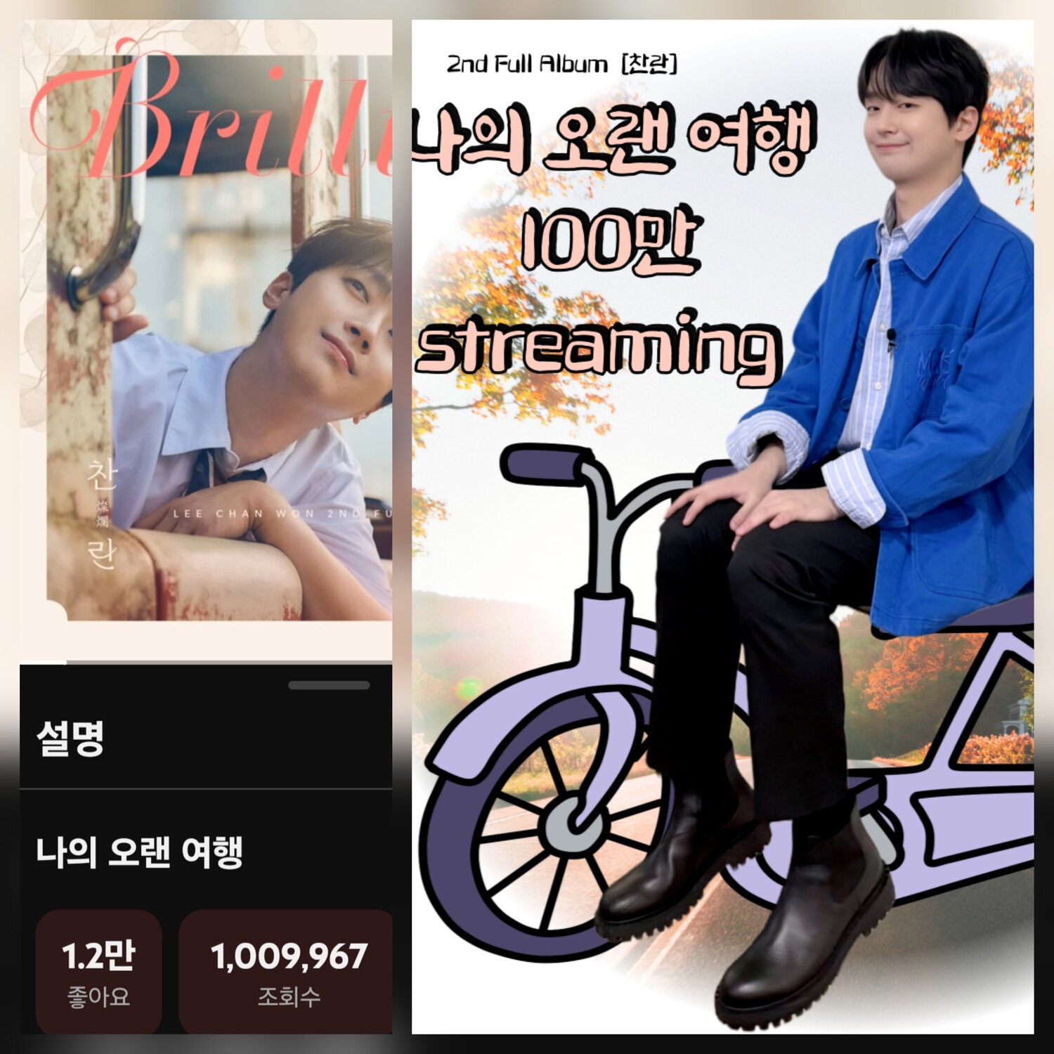 사실 '나의 오랜 여행'의 100만 뷰는 이찬원의 최근 행보를 생각하면 예정된 수순이었습니다. 지난 11월 20일 발매된 정규 2집 '찬란(燦爛)'은 초동(발매 첫 주) 판매량만 61만 장을 기록했으니까요.