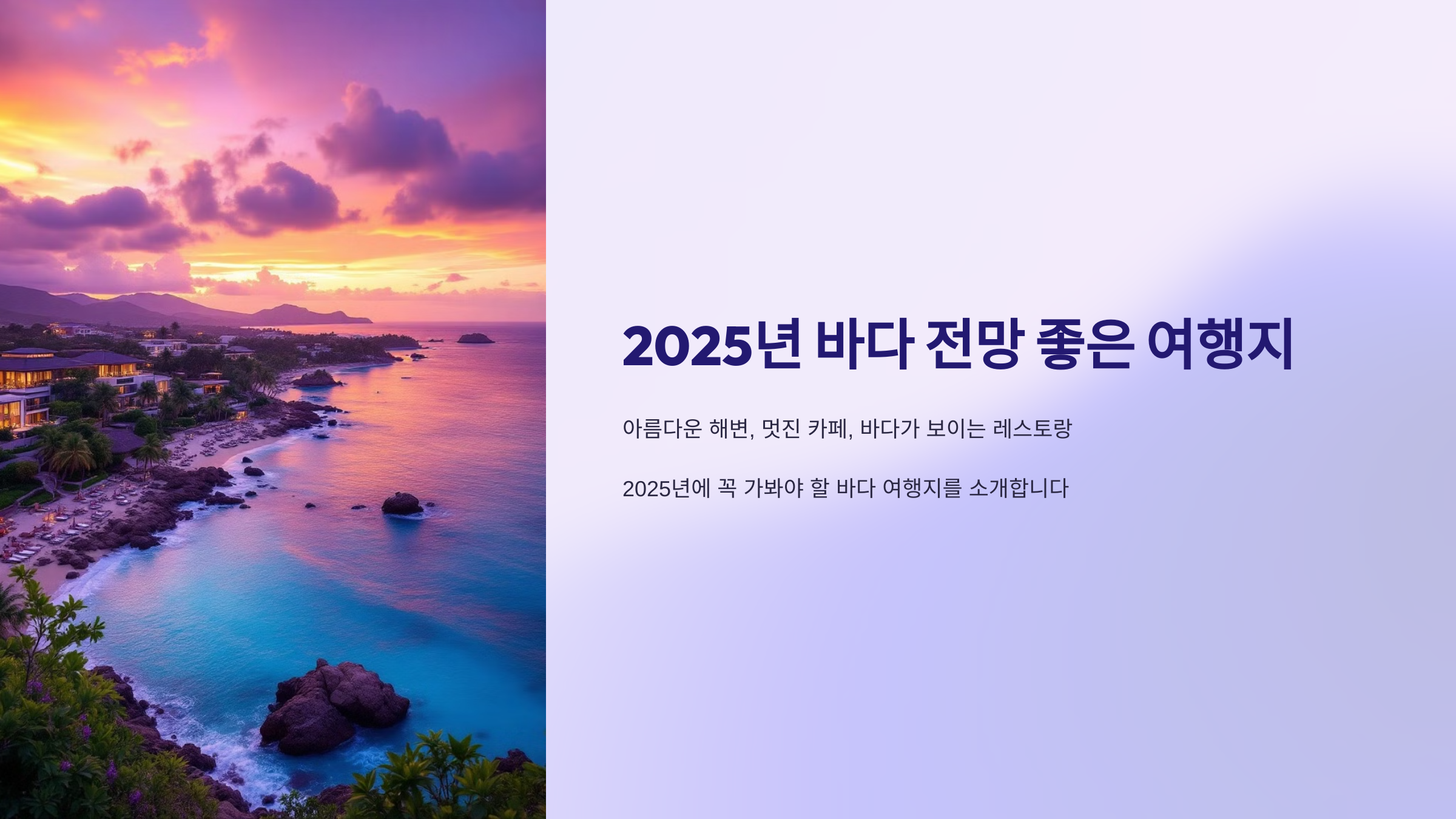 여행을 사랑하는 여러분, 안녕하세요! 2025년에는 새로운 여행을 계획하고 계신가요? 저는 바다가 보이는 감성적인 카페에서 커피 한 잔을 마시거나, 멋진 숙소에서 파도 소리를 들으며 잠드는 걸 정말 좋아하는데요. 이번 포스팅에서는 뷰가 끝내주는 해변 명소, 감성적인 카페와 레스토랑, 그리고 가성비까지 좋은 여행지를 소개해 드리려고 해요. 가고 싶은 곳이 너무 많아 고민이라면, 이 글을 끝까지 읽어보세요! ✨