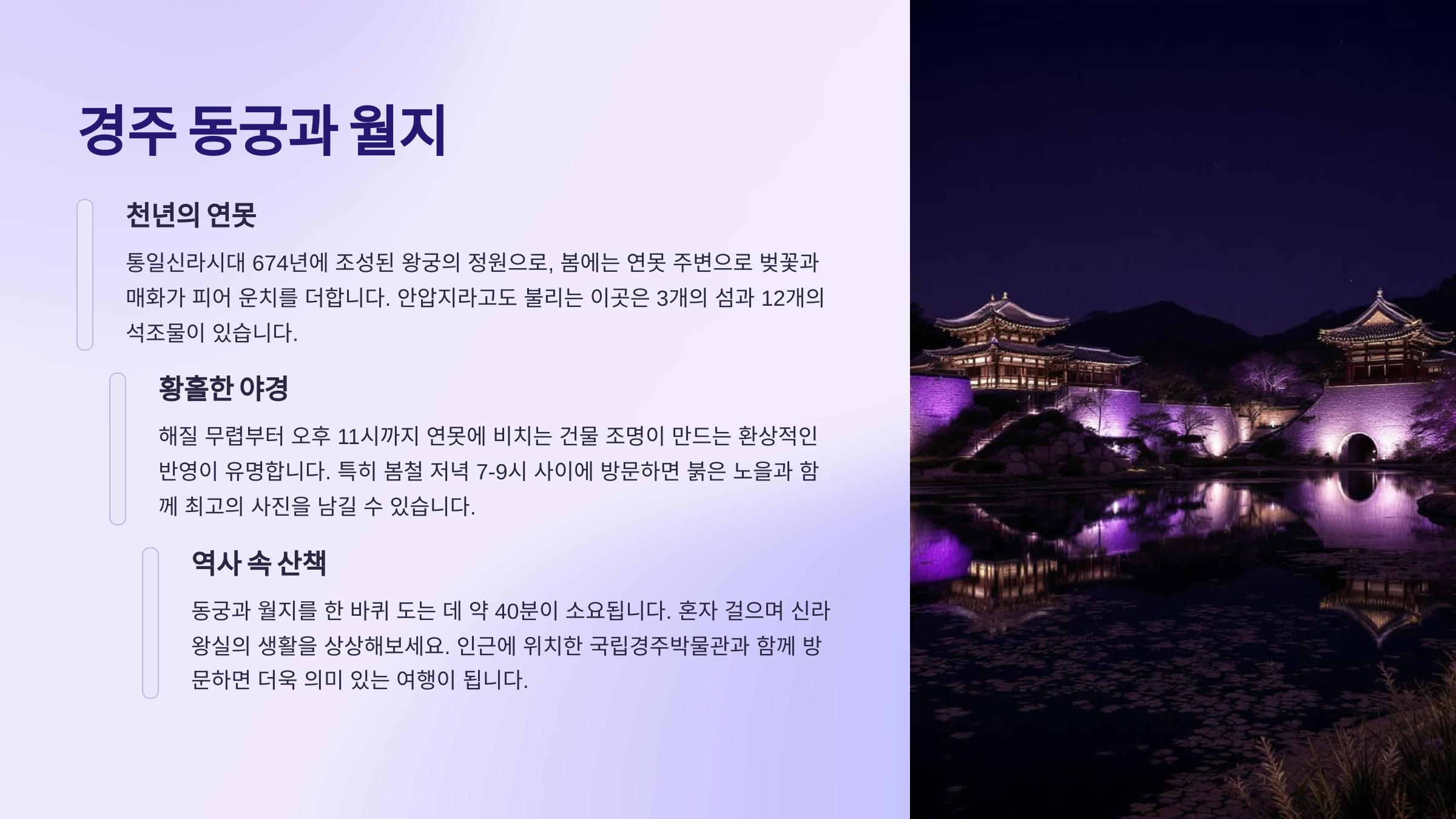 - 경주 동궁과 월지 - 야경이 아름다운 고즈넉한 연못
