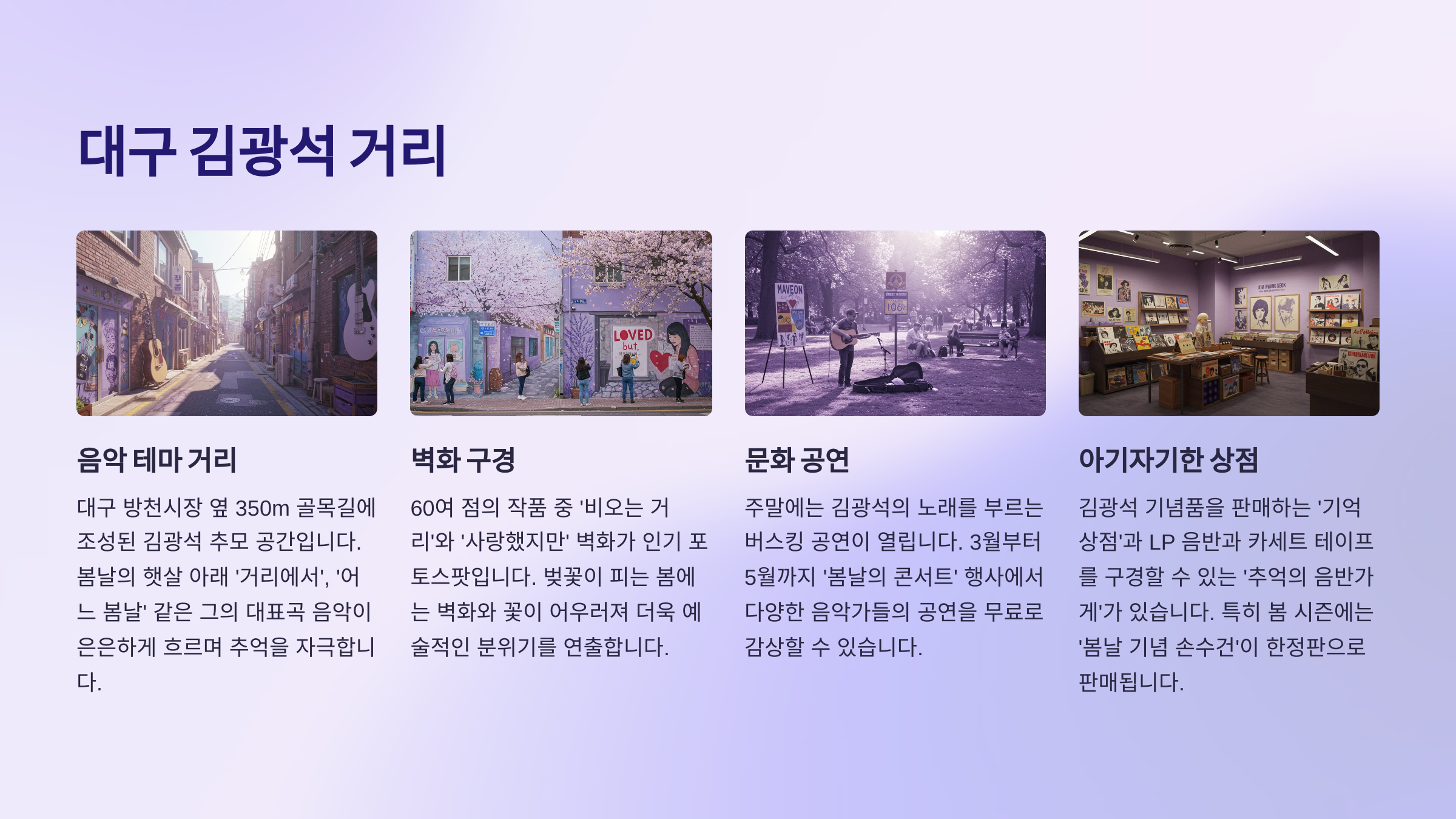 - 대구 김광석 거리 - 음악과 예술이 어우러진 골목