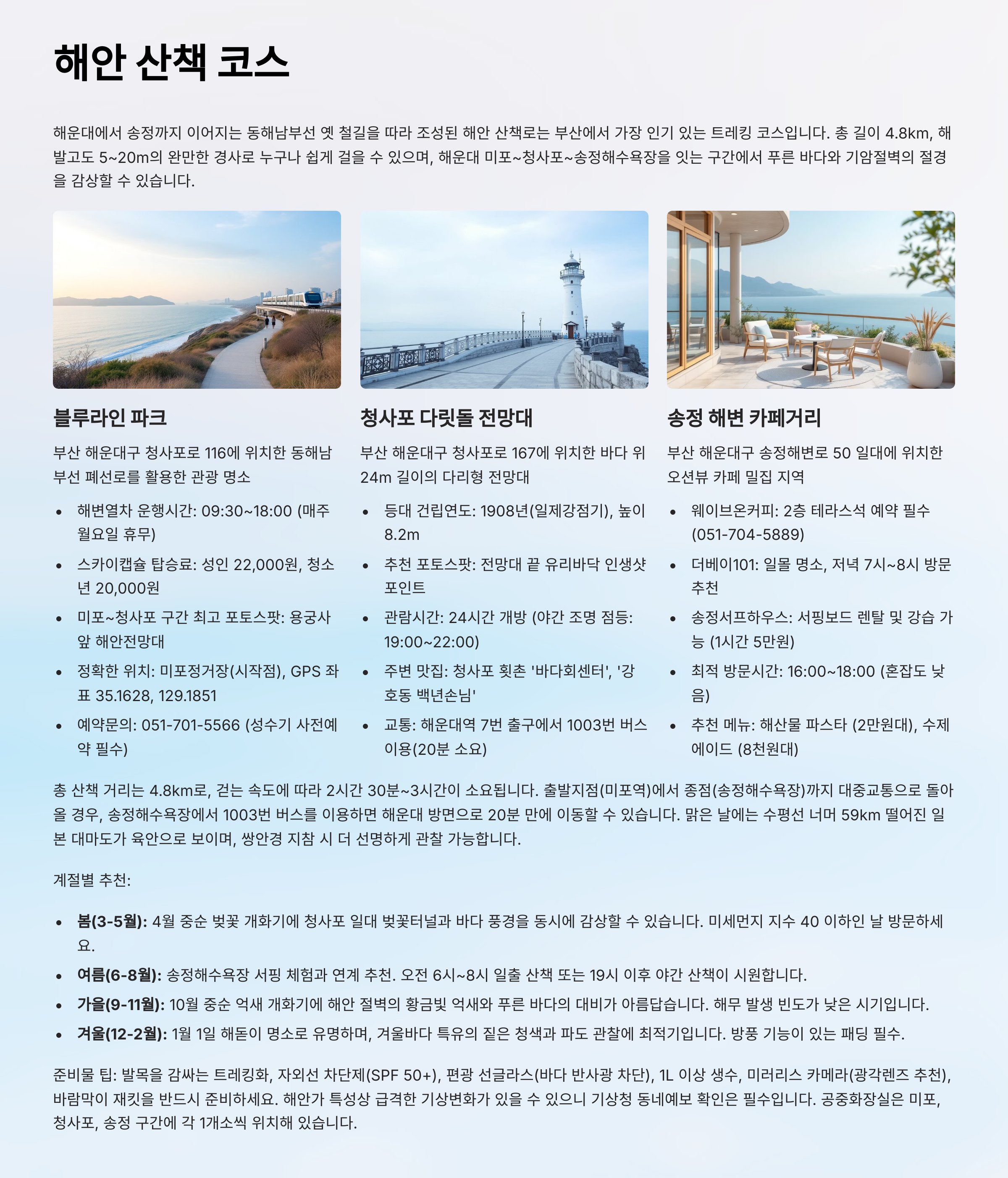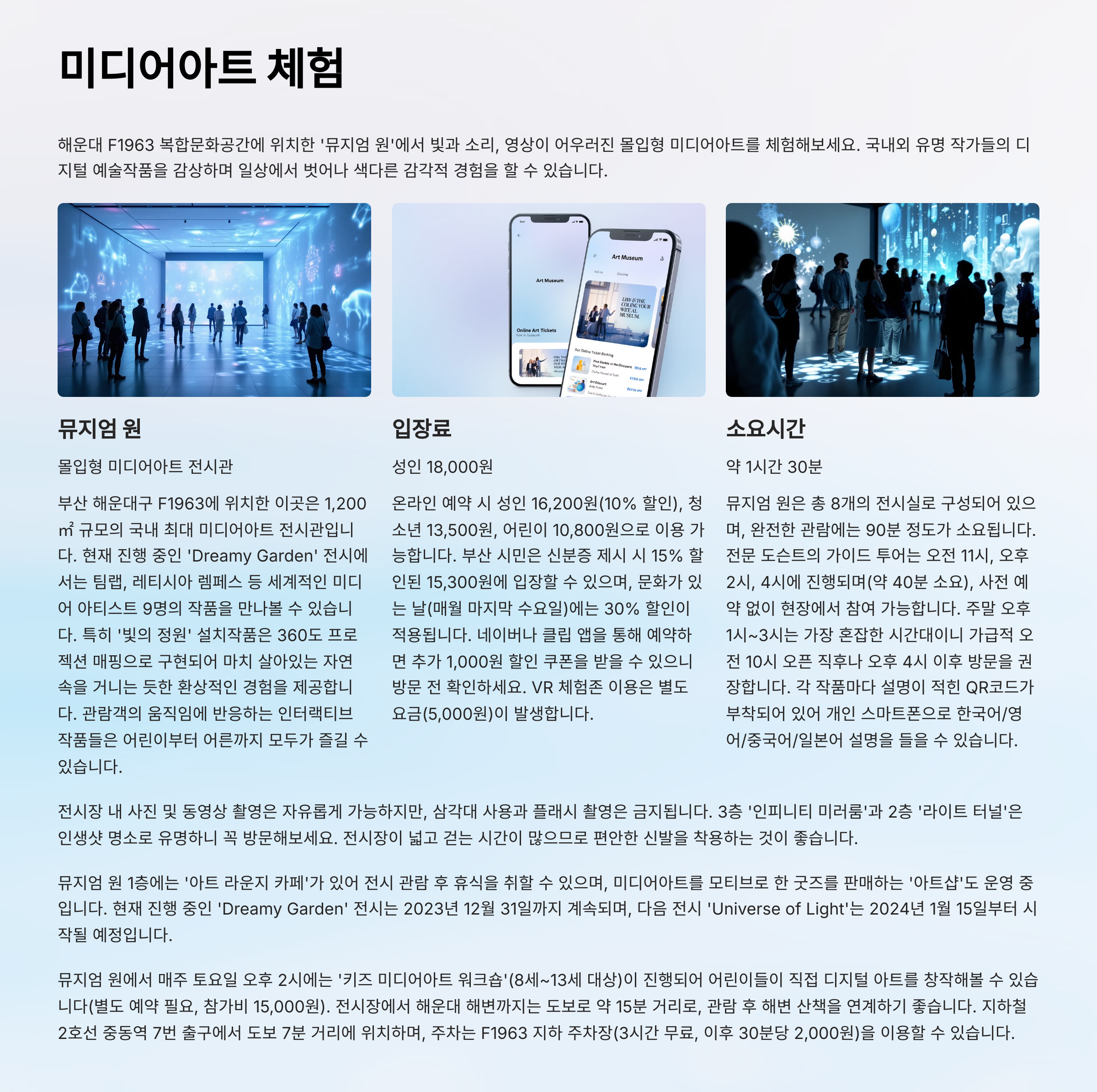 - 테마: 미디어아트 전시, 바다 산책, 예쁜 카페 힐링