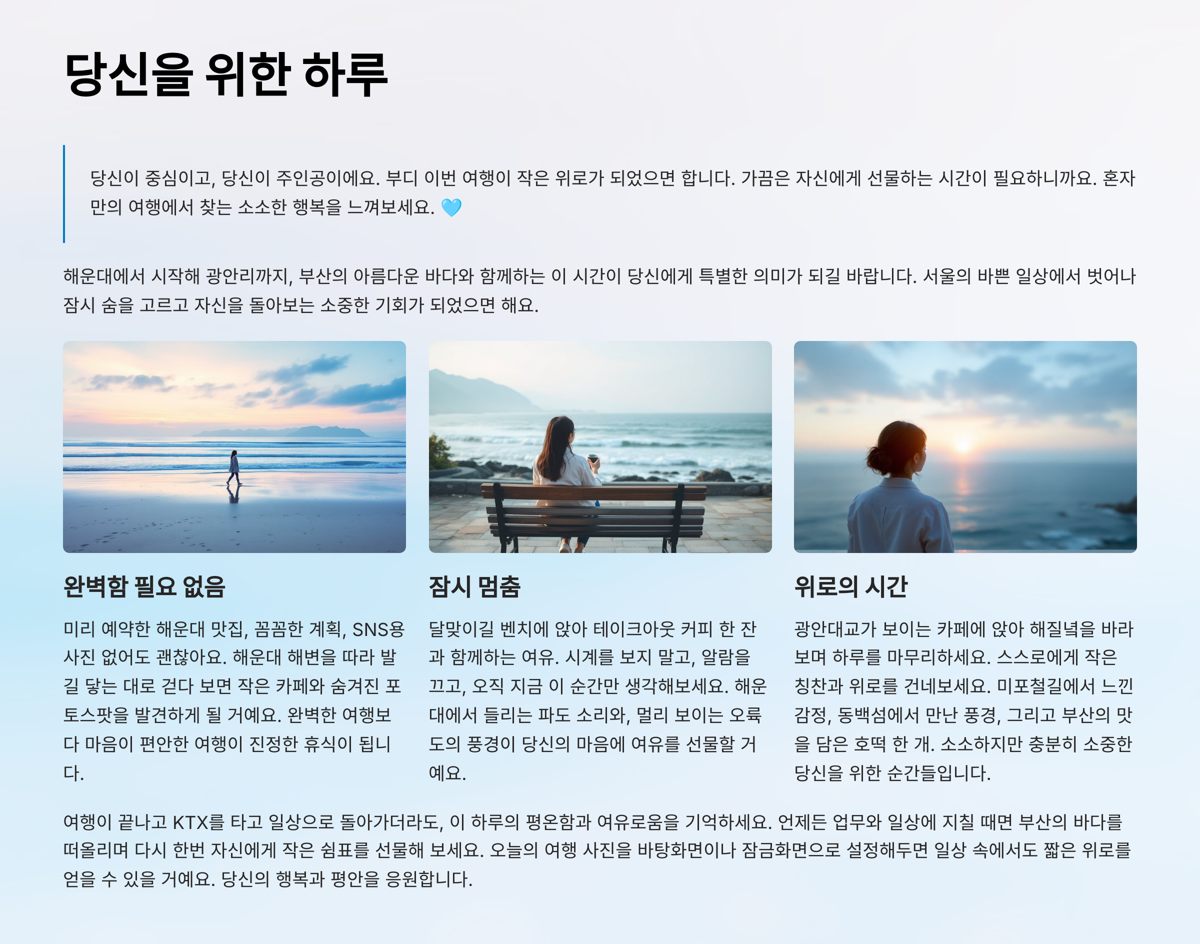 부디 이번 여행이 작은 위로가 되었으면 합니다. 🩵
