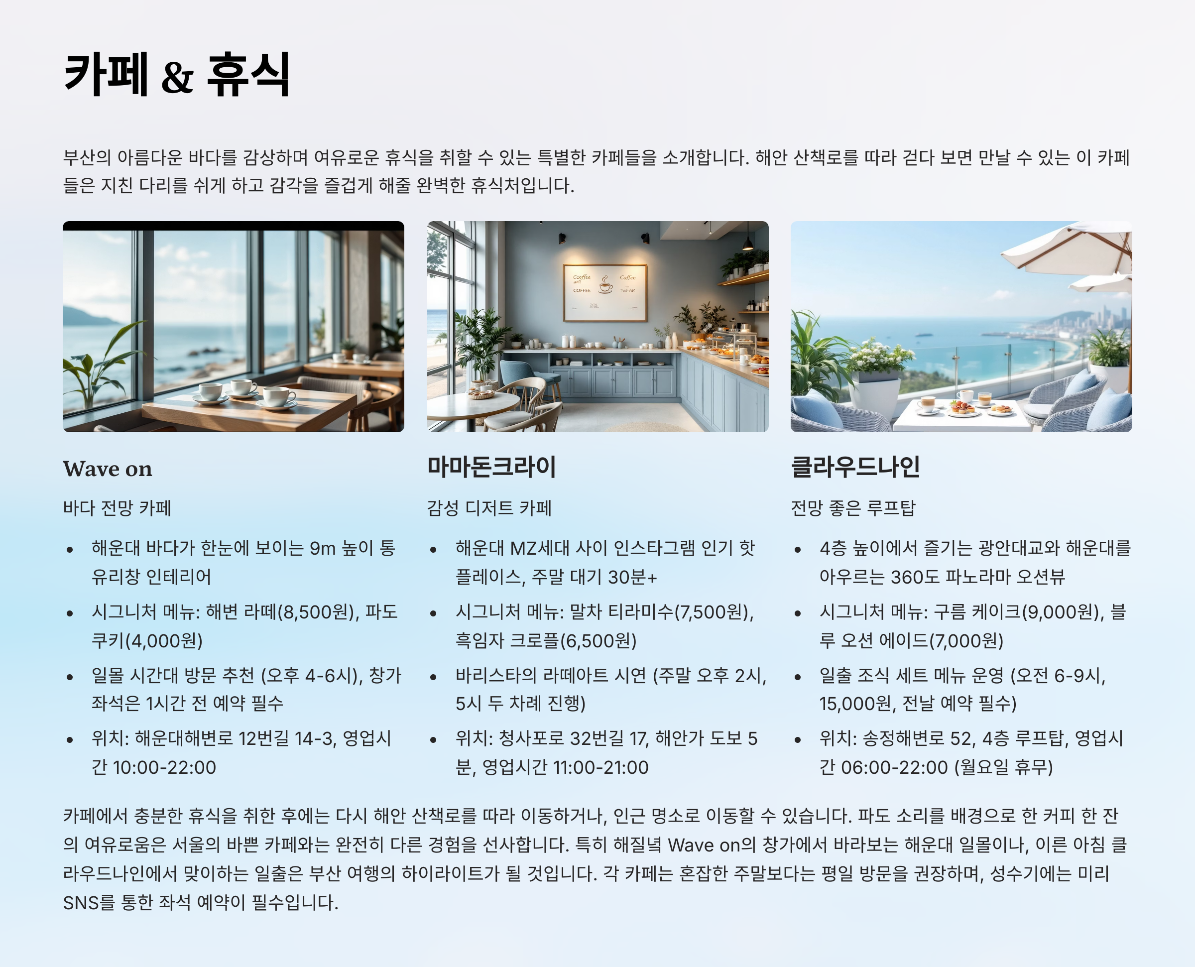 추천: Wave on, 마마돈크라이, 클라우드나인 등 바다 보이는 감성 카페