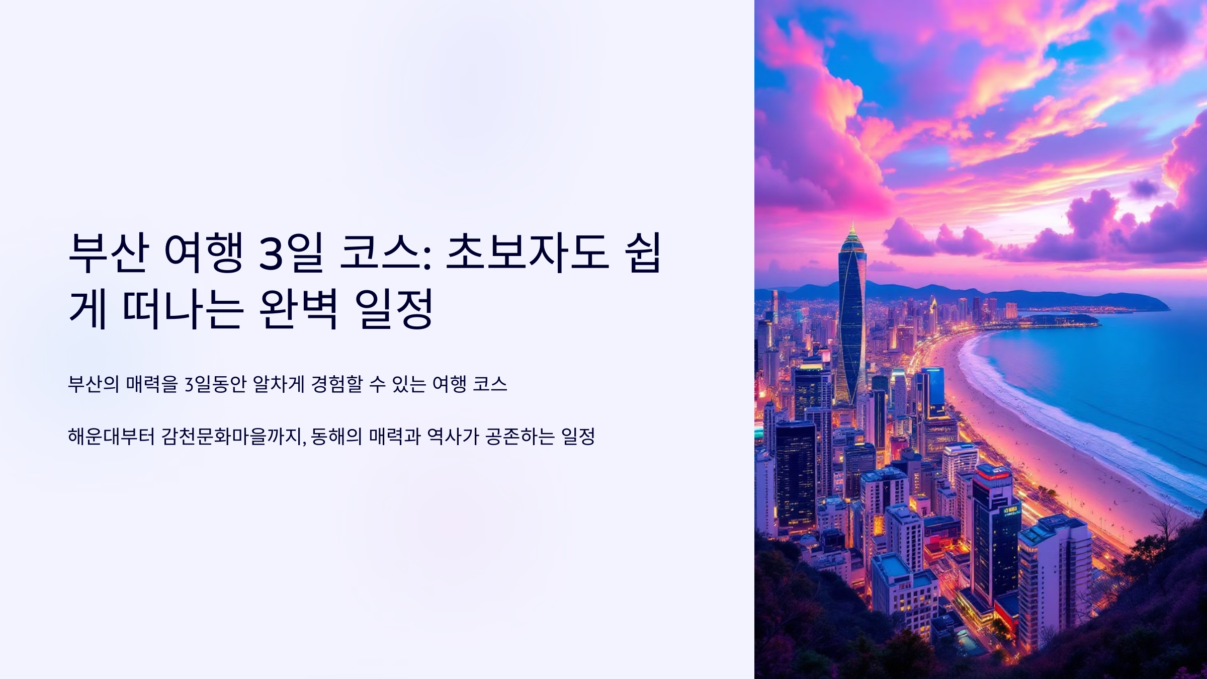 부산 여행 코스 정리! 해운대부터 감천문화마을까지, 초보자도 따라 하기 쉬운 일정 추천. 빠르게 부산 여행 코스를 원하시면 아래 버튼에서 확인하세요.