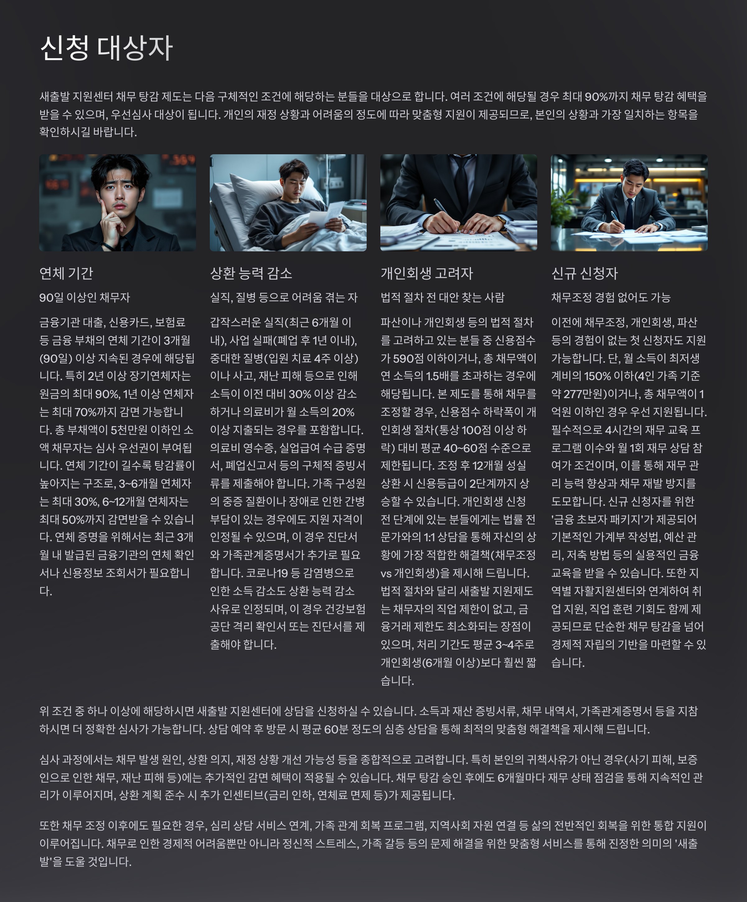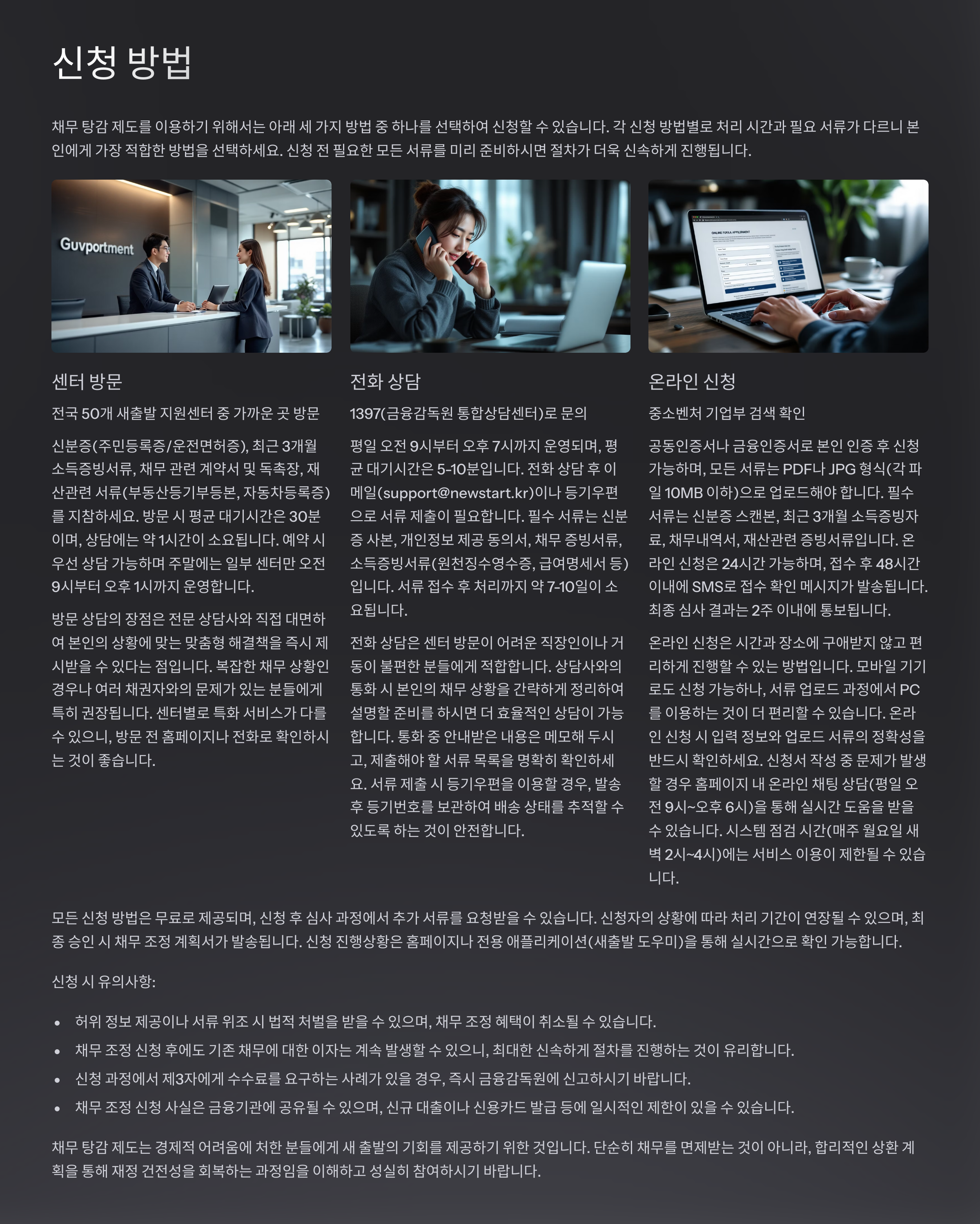 - 채무조정 경험이 없는 신규 신청자도 가능