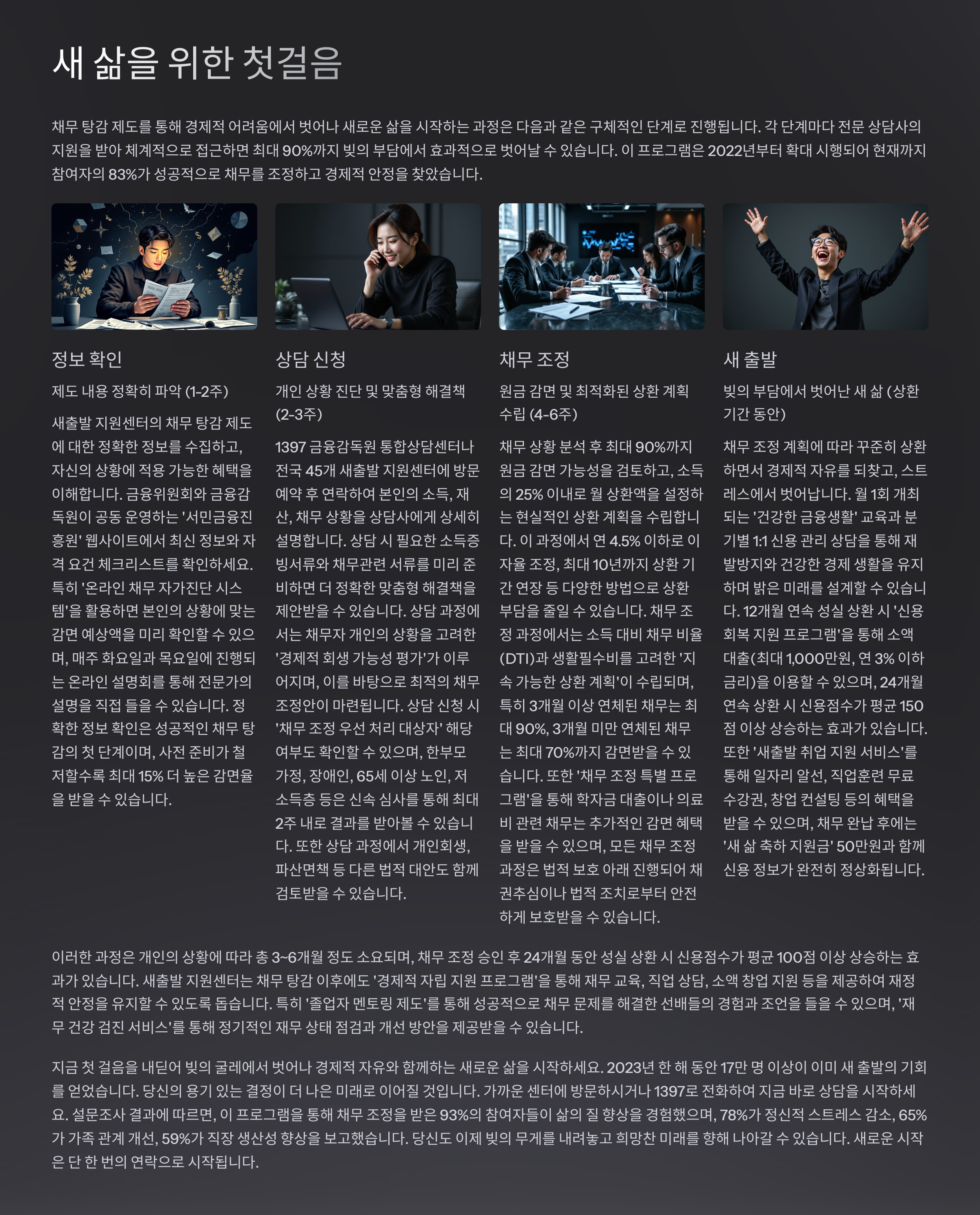 2022년부터 운영을 시작해, 이미 수많은 채무자들이 도움을 받아 빚에서 벗어나 새 삶을 시작하고 있습니다.
