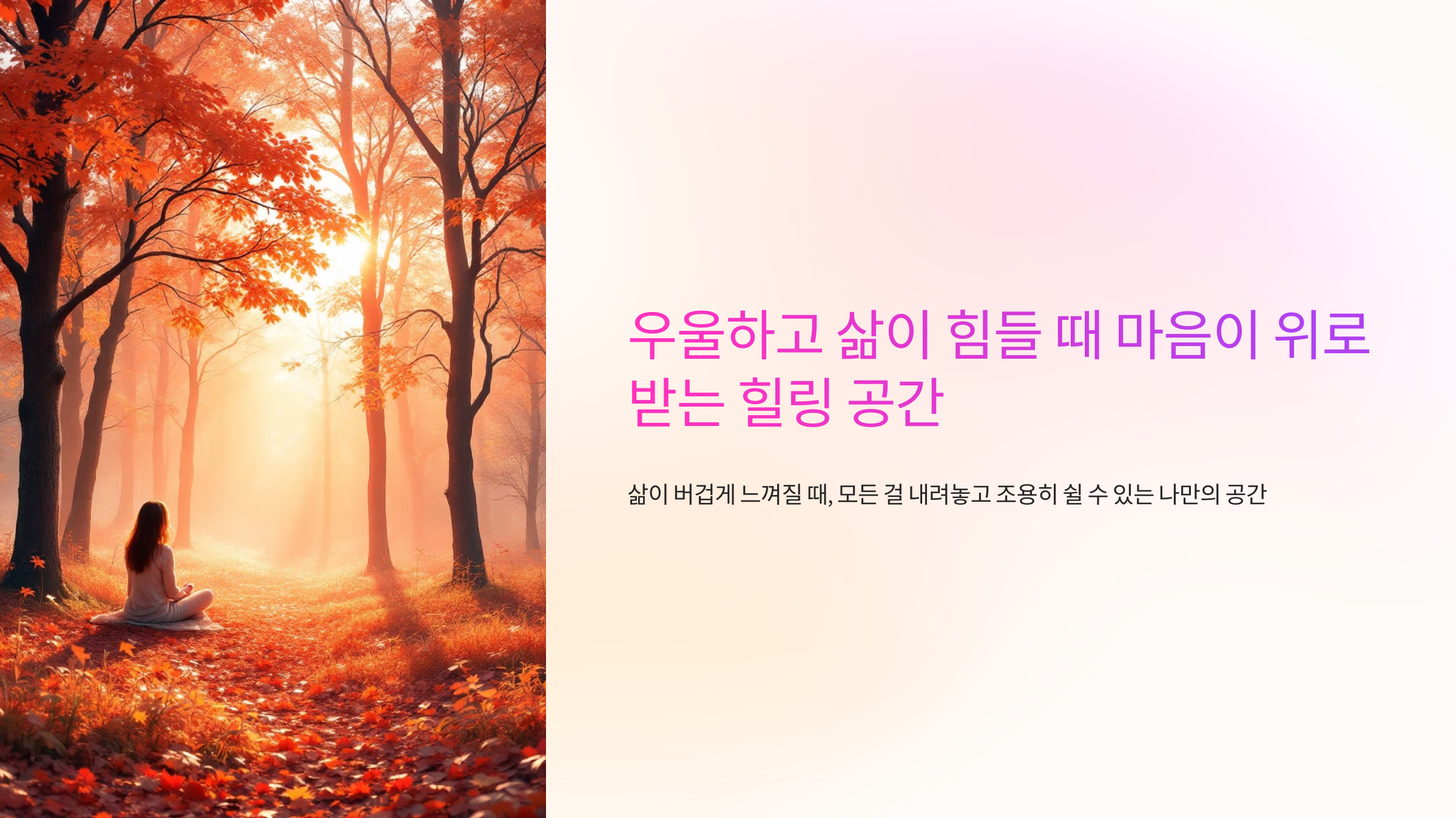 여러분은 어떤 공간에서 위로를 받으시나요? 여러분만의 힐링 장소가 있다면 댓글로 공유해 주세요.