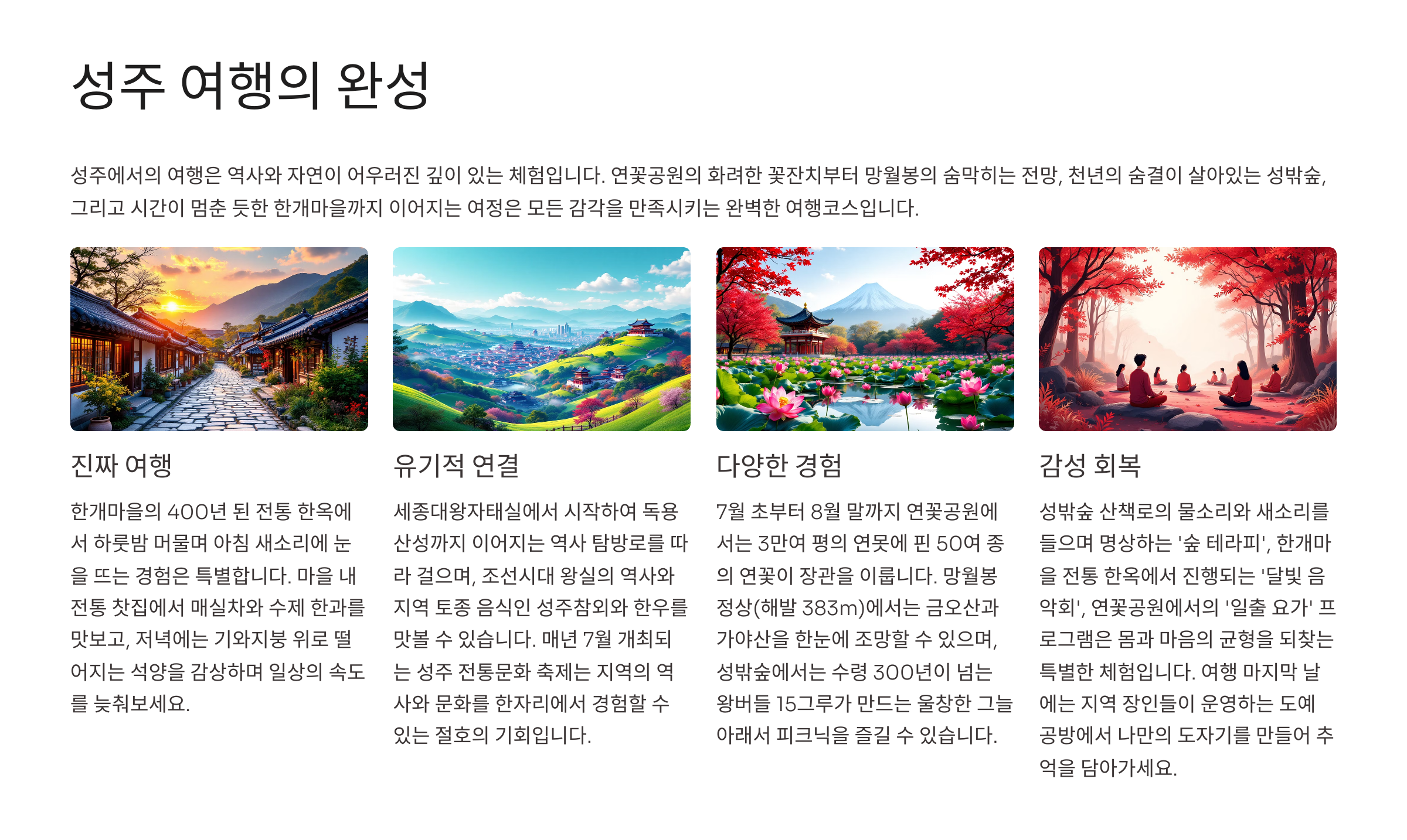 자연과 역사, 음식과 여유가 공존하는 성주는 하루가 모자랄 정도로 풍성한 경험을 선사합니다. 이번 주말, 단순한 나들이가 아닌 ‘진짜 여행’을 원한다면 성주로 떠나보세요.