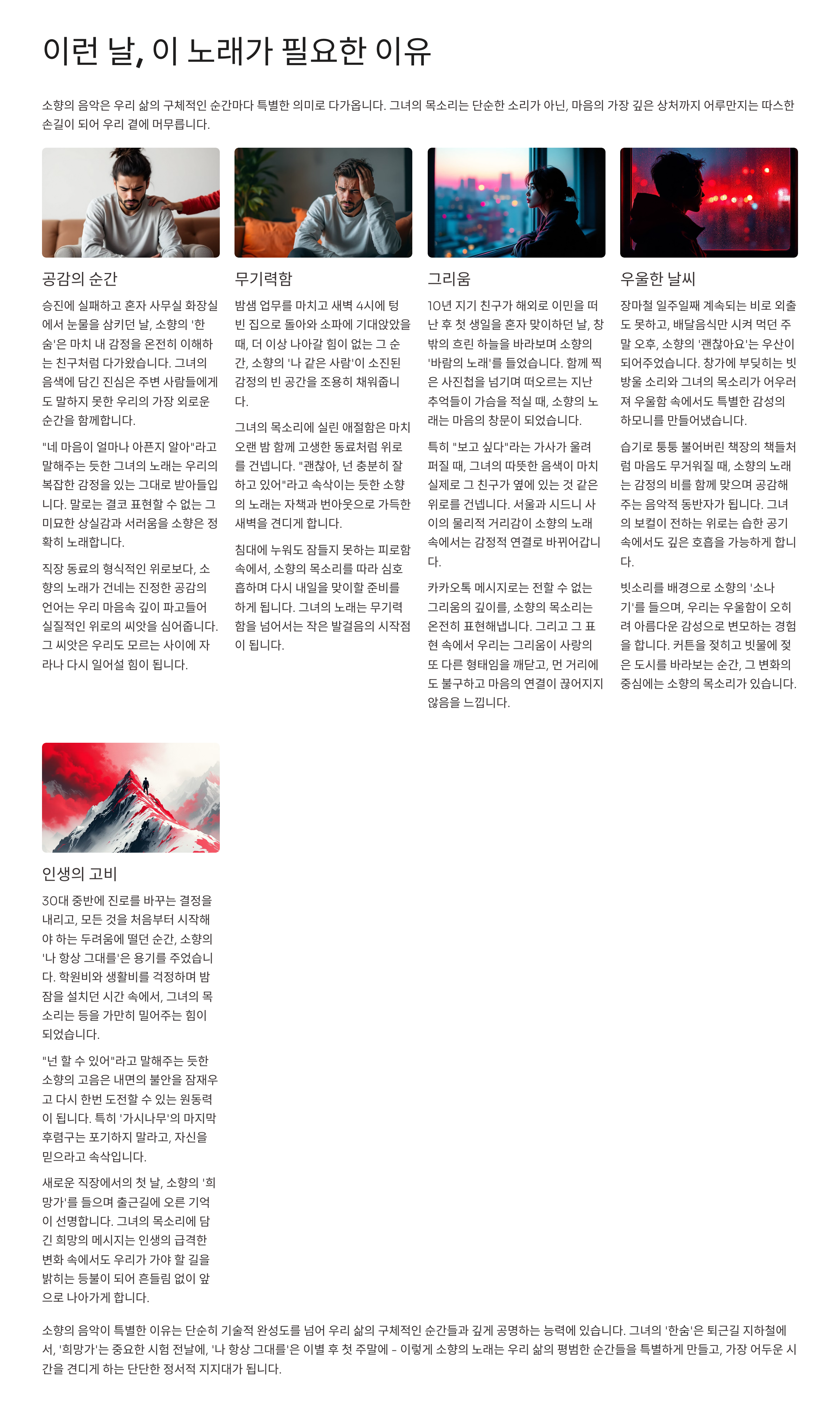 소향의 목소리를 통해 전해지는 이 노래는 단순한 위로를 넘어,