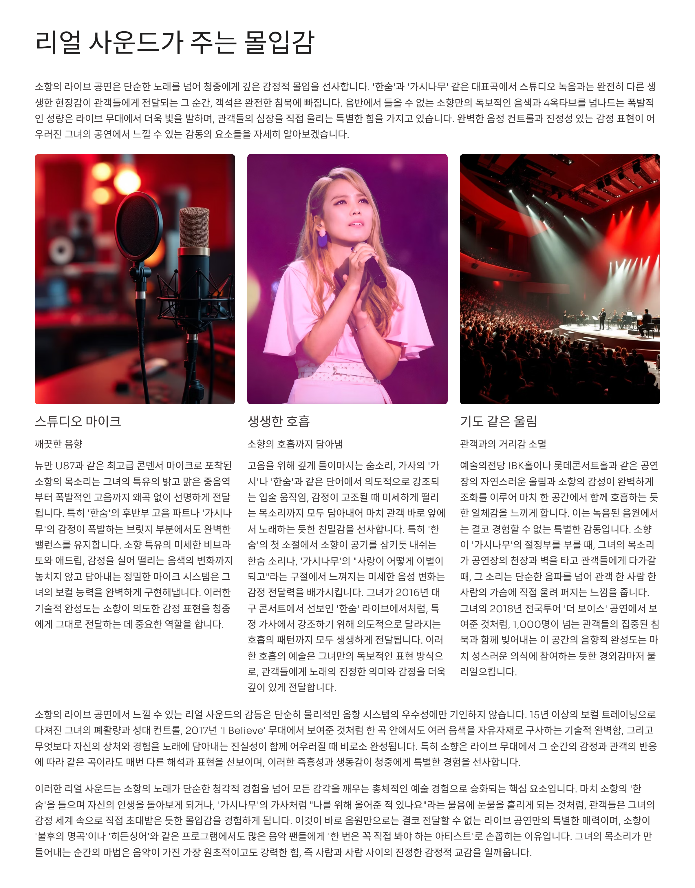 군더더기 없이 깨끗한 음향이, 소향의 호흡 하나하나까지 생생히 담아내며