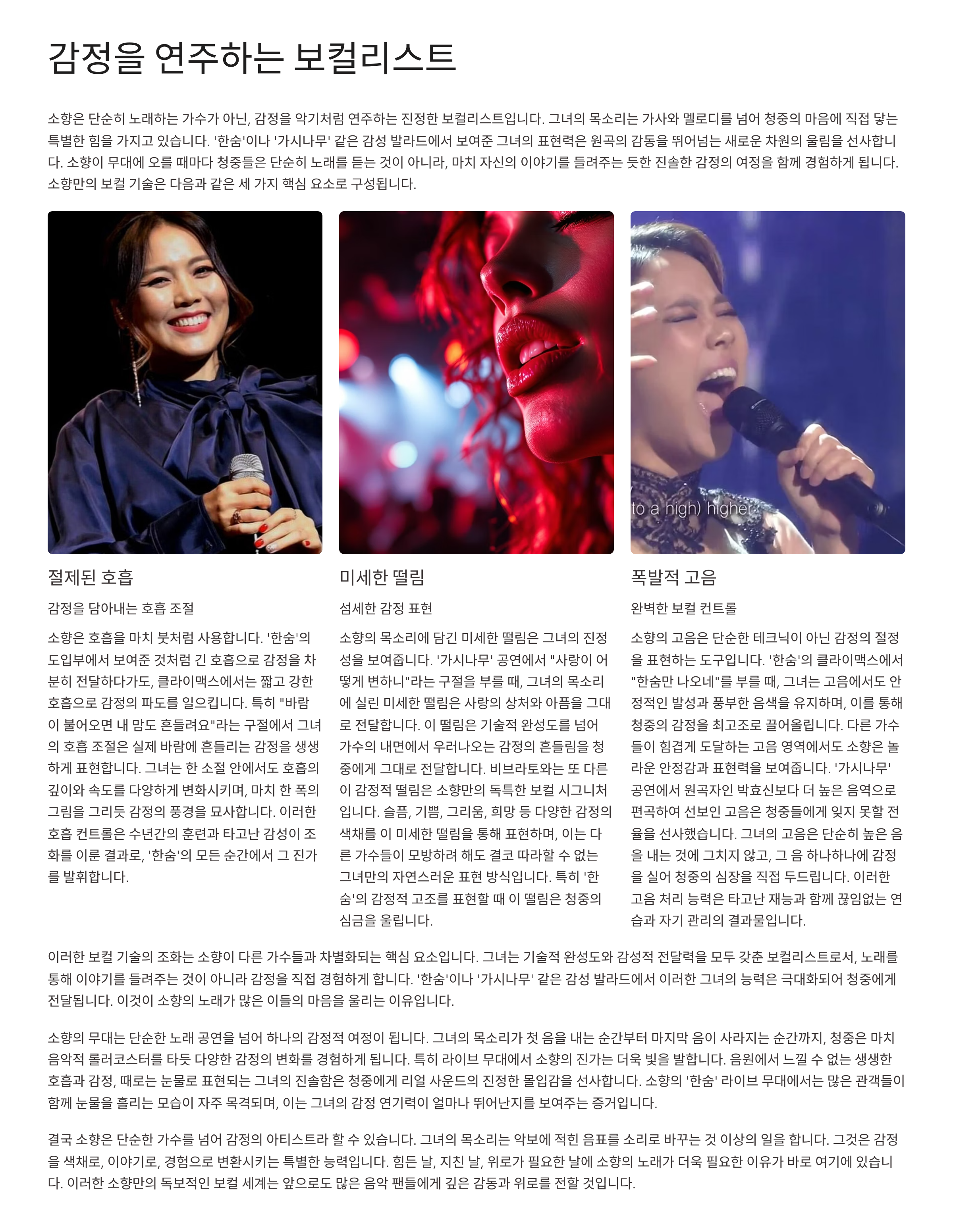 소향은 단순히 노래를 부르는 가수가 아니라,