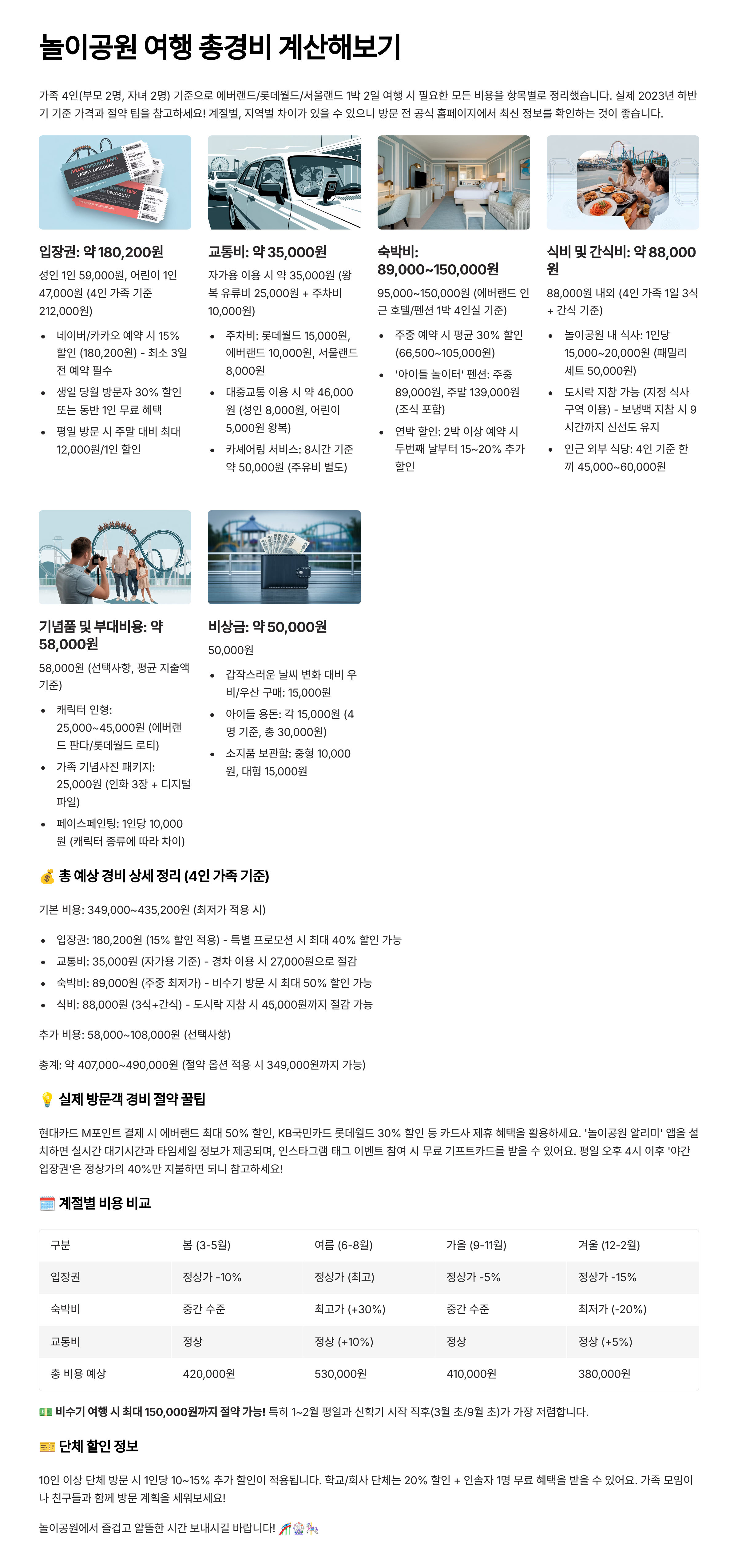 총 예상 경비: 약 200,000~220,000원으로 1박 2일 놀이공원 여행 OK!