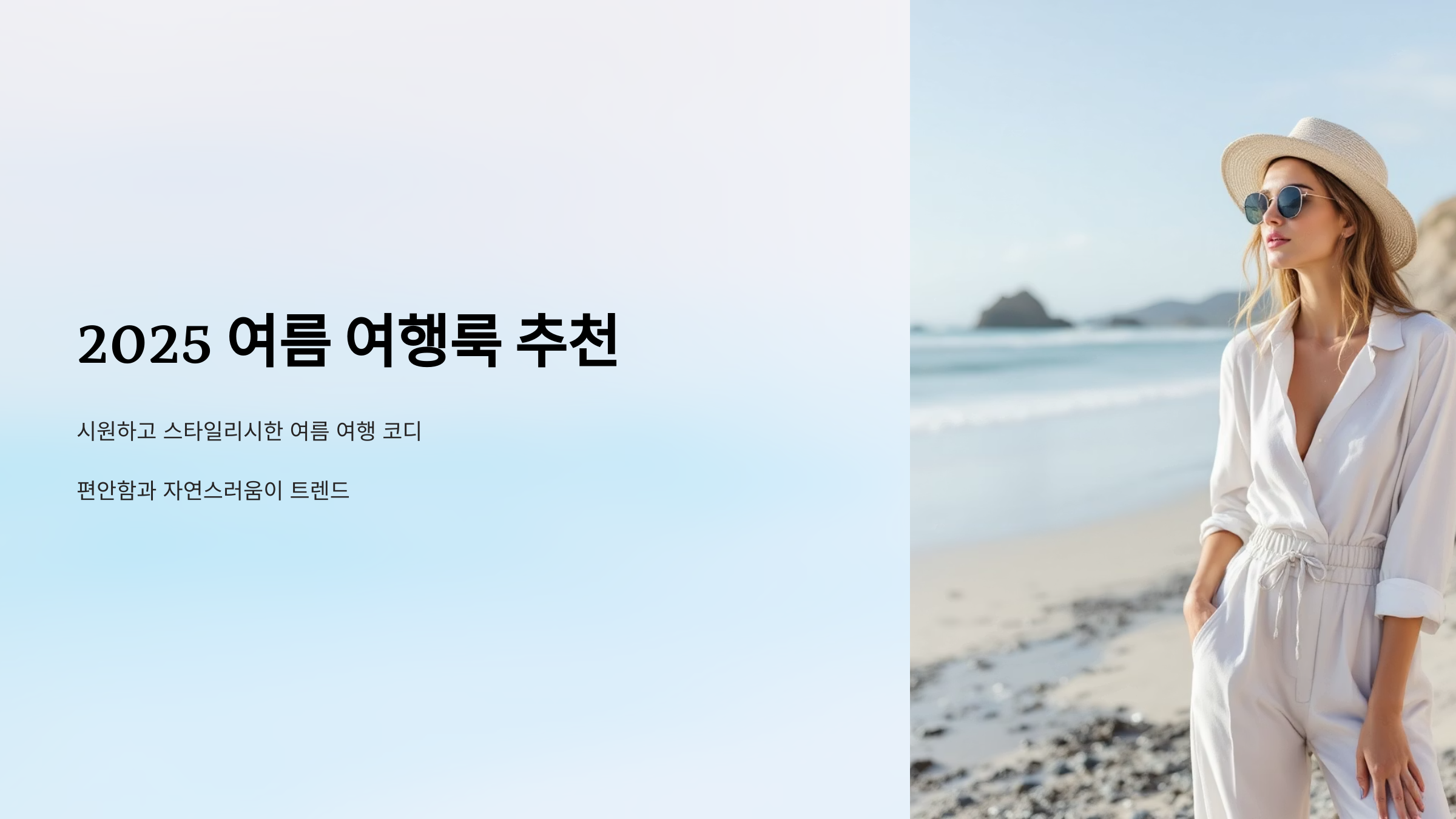 2025년 여름, 트렌드를 반영한 여름 여행룩으로 스타일리시하면서도 편안한 여행을 즐겨보세요.