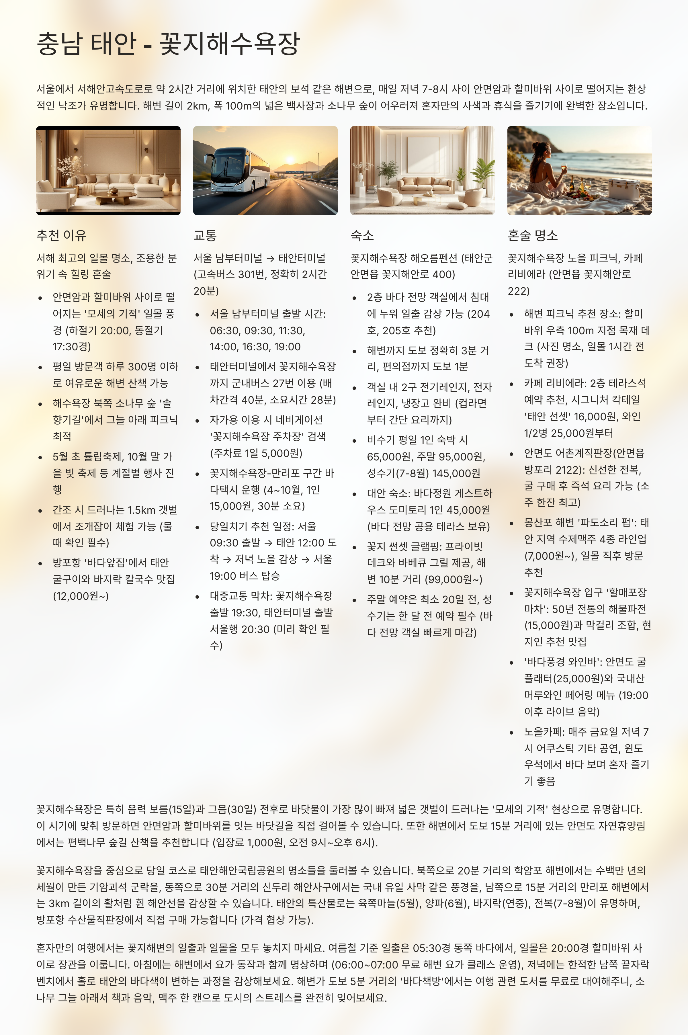 교통, 숙소, 지도 링크까지 모두 포함된 정보입니다.