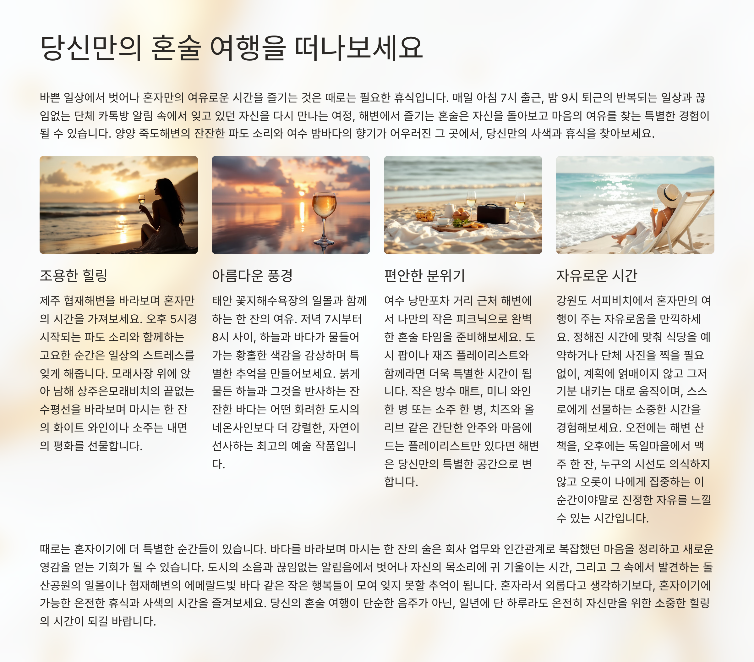 혼자 바닷가에서 술 한잔하기 좋은 여행지