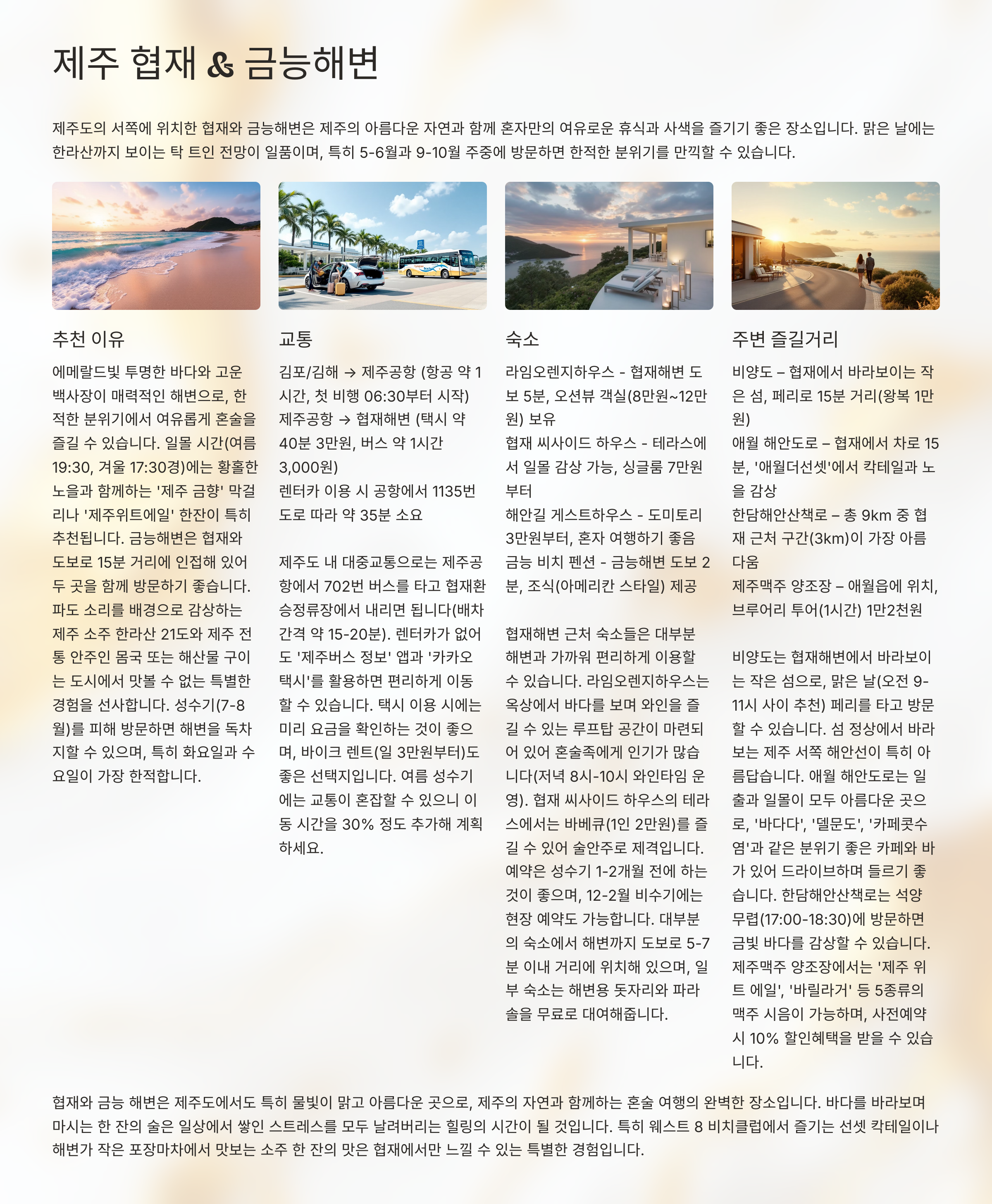 - 제주공항 → 협재 (버스 70번, 약 1시간 20분)