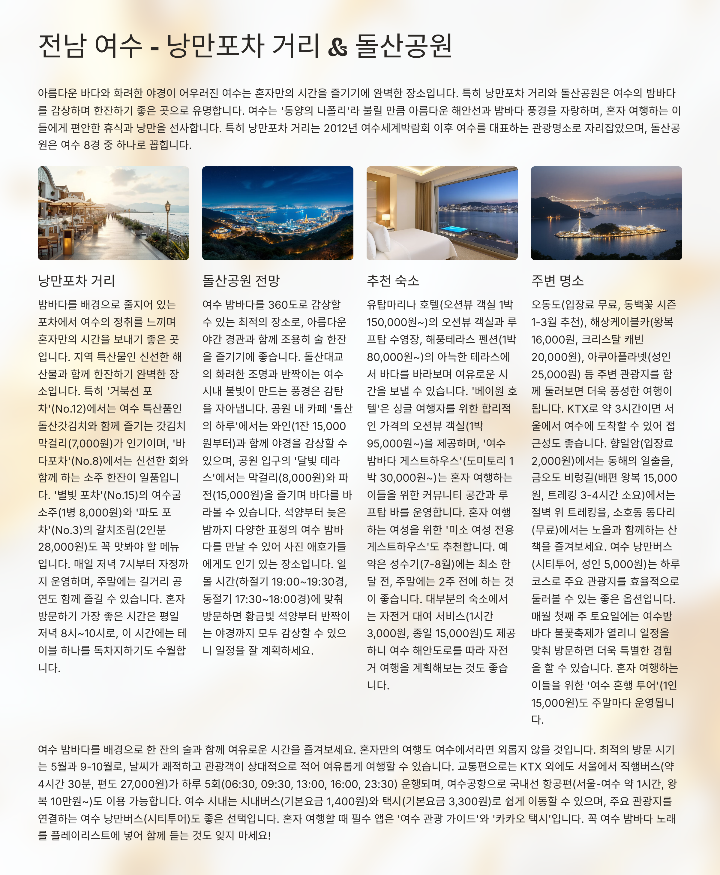 - KTX 용산역 → 여수엑스포역 (약 3시간)