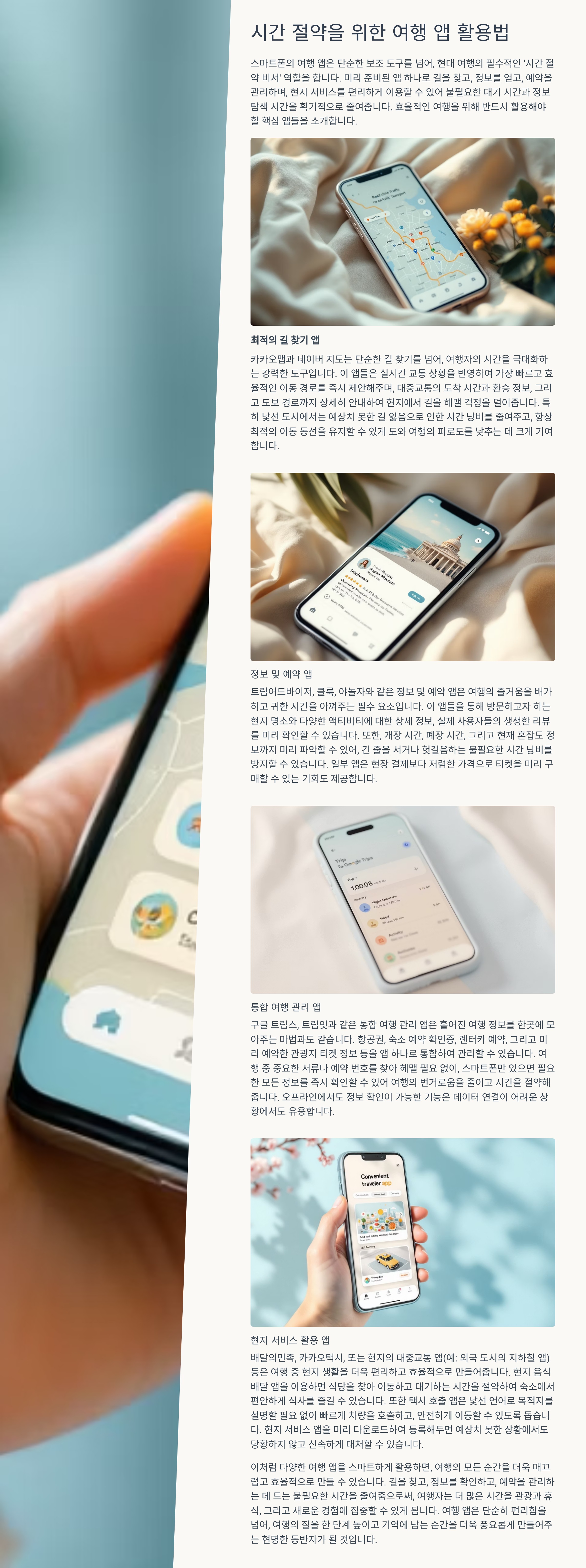 카카오내비, 네이버 지도, 트립어드바이저 등 여행 관련 앱은 실시간 정보를 제공해 시간 낭비를 줄여줍니다.