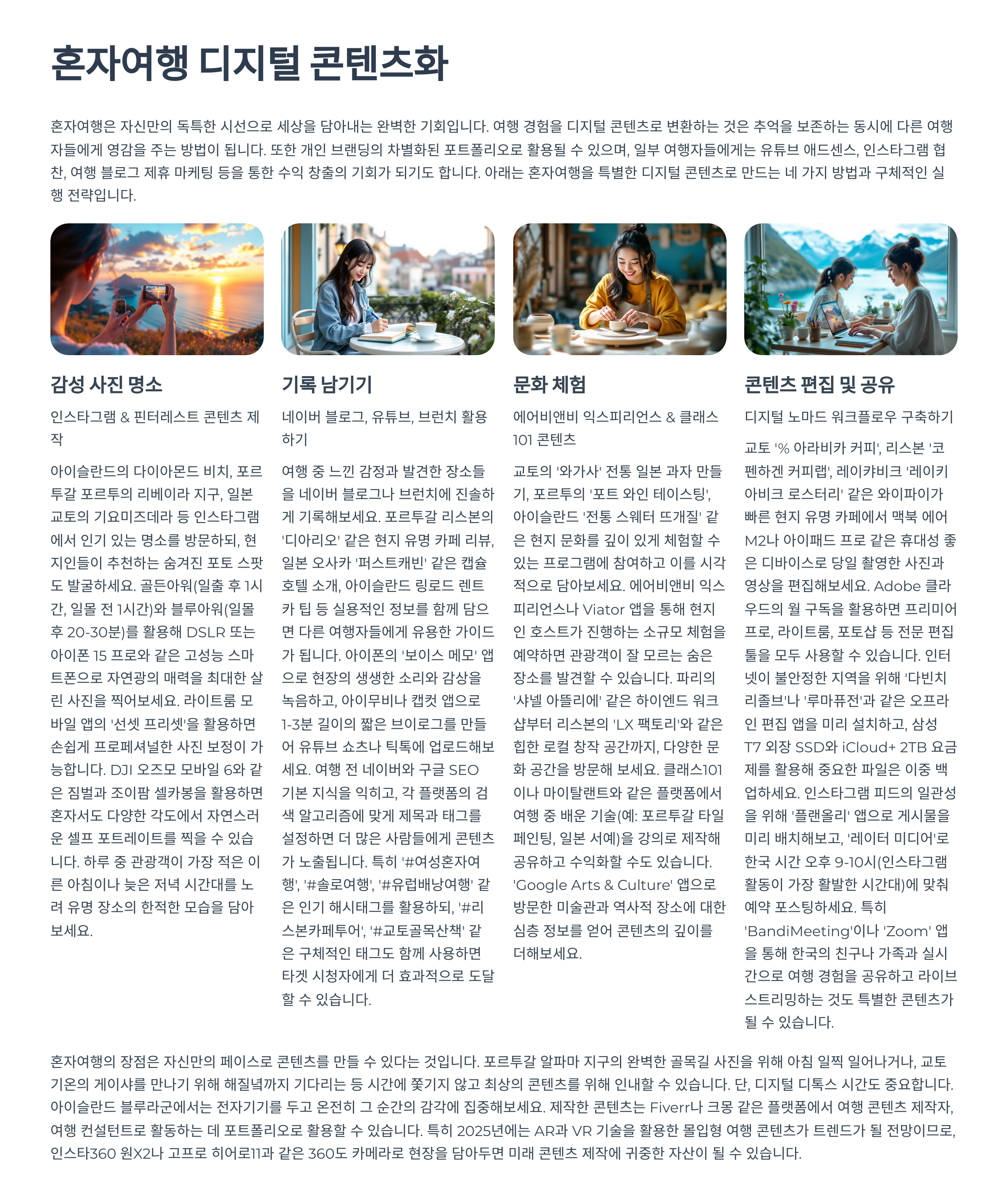 이러한 흐름을 참고해 여행지를 선택하고, 일정을 설계하면 혼자여행이 두렵지 않고 오히려 더 풍부한 경험을 얻게 될 것입니다.