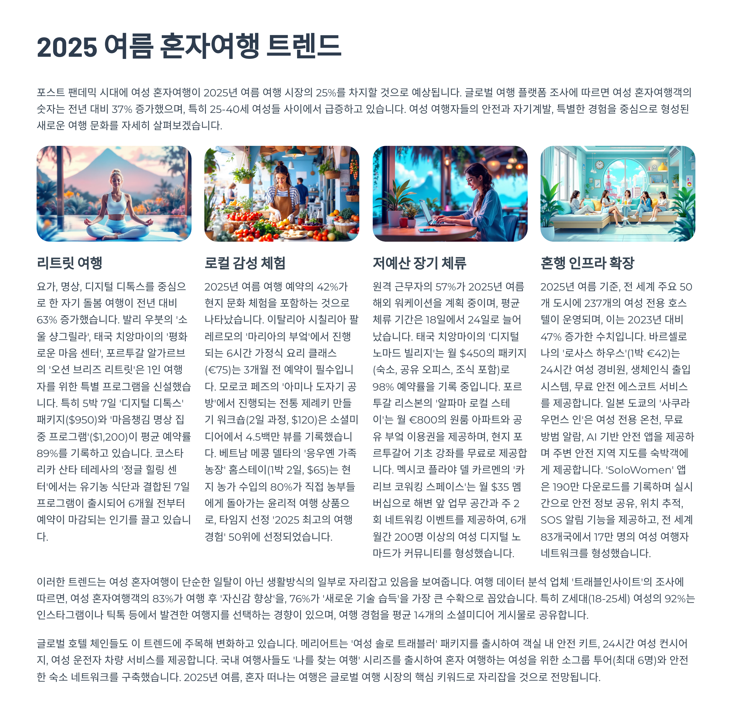 2025년 여름, 혼자만의 여유로운 여행을 꿈꾸는 여성들이 점점 늘어나고 있습니다.