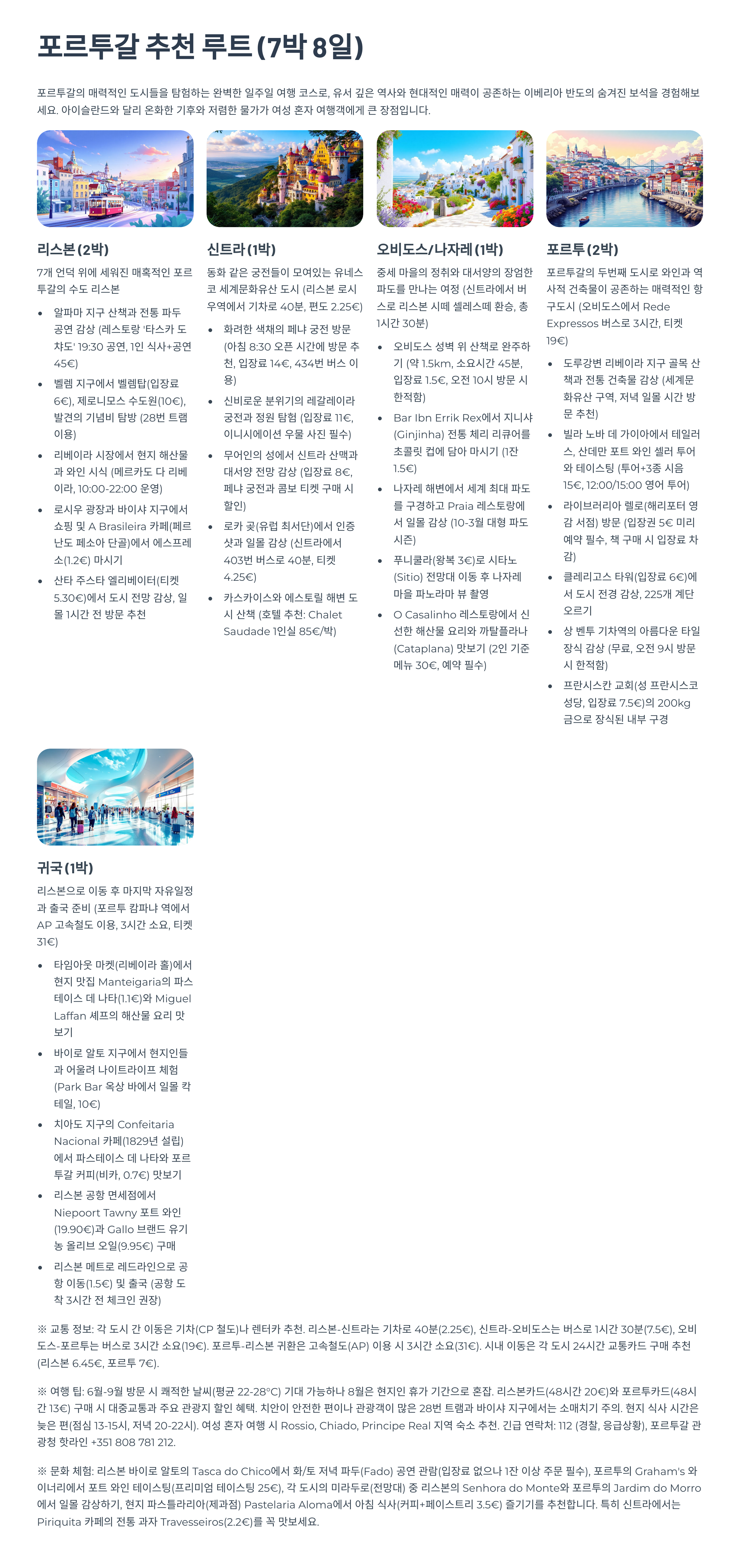 - Day 3~4: 신트라 궁전 투어 및 카스카이스 해안 마을 투어