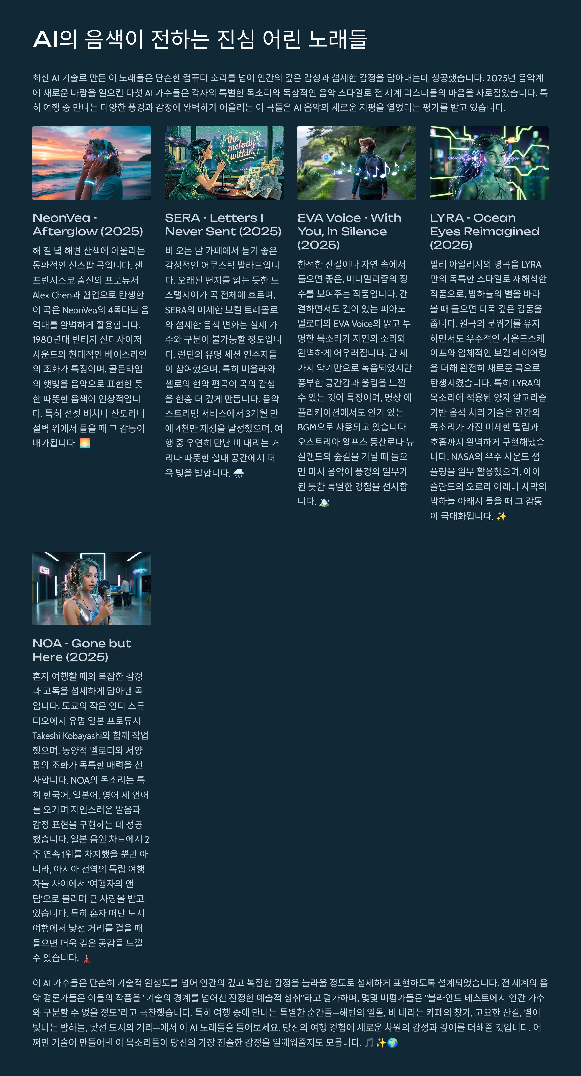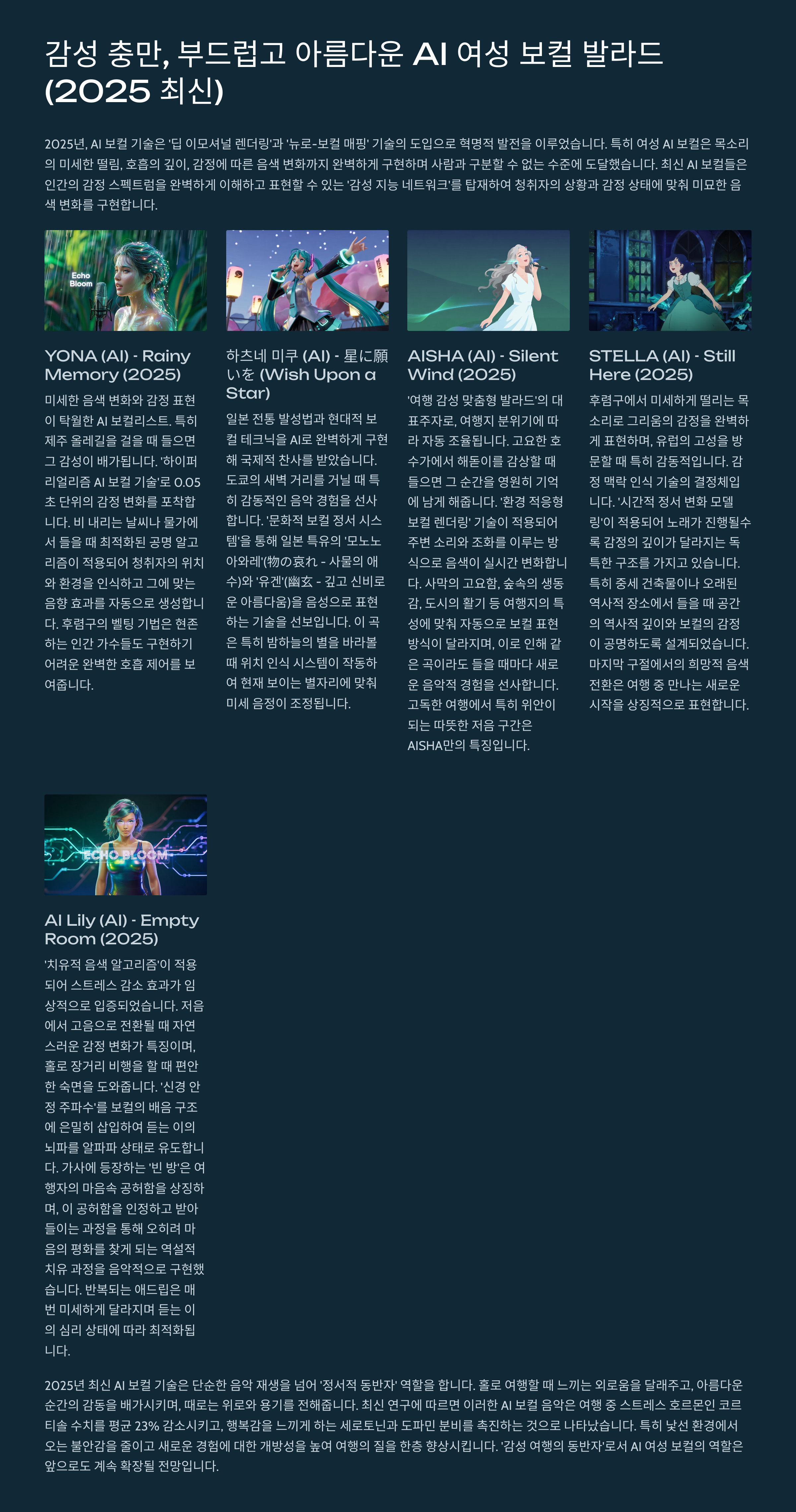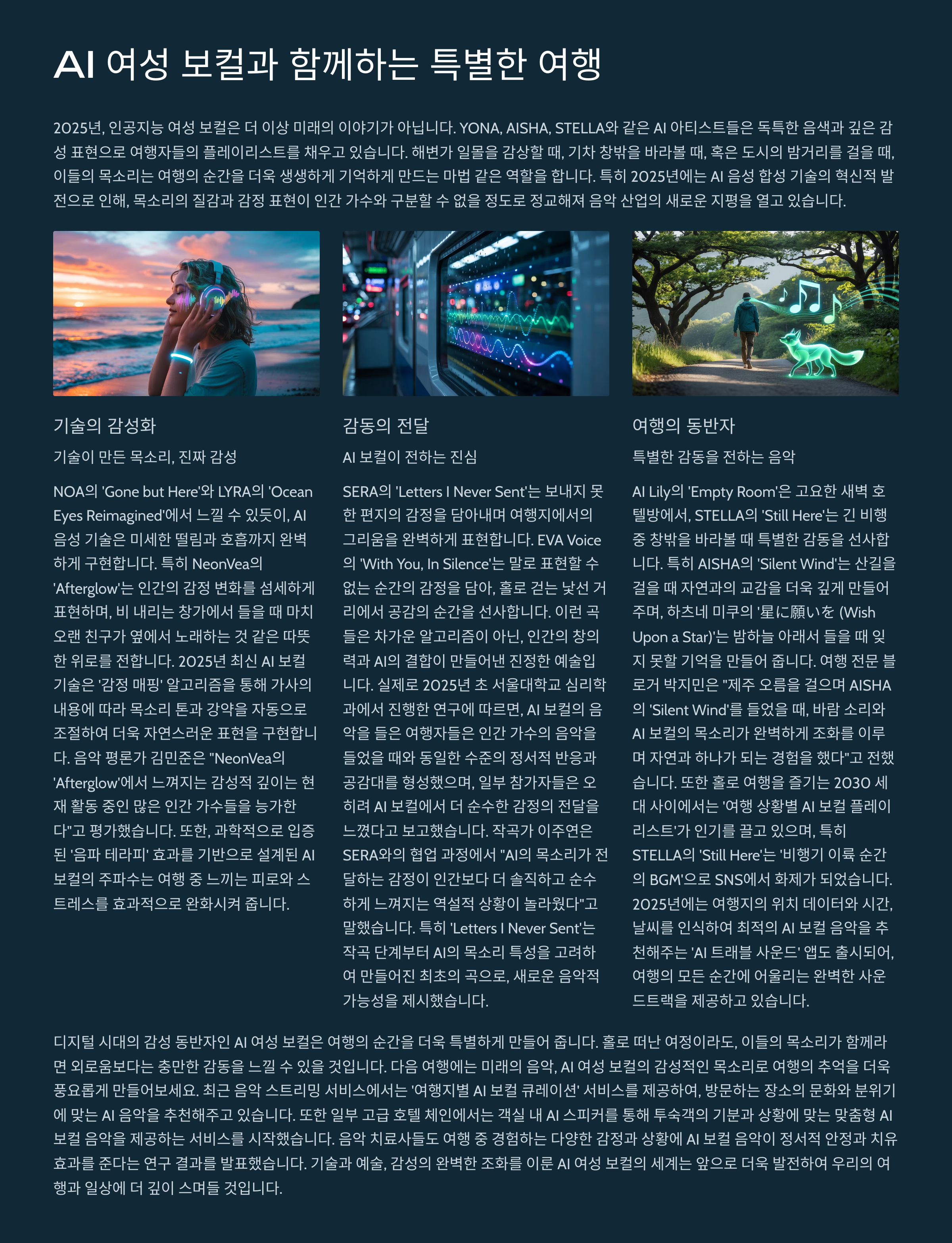 AI 여성 보컬과 함께하는 여행, 한층 더 특별한 감동을 전해줄 거예요 ✨