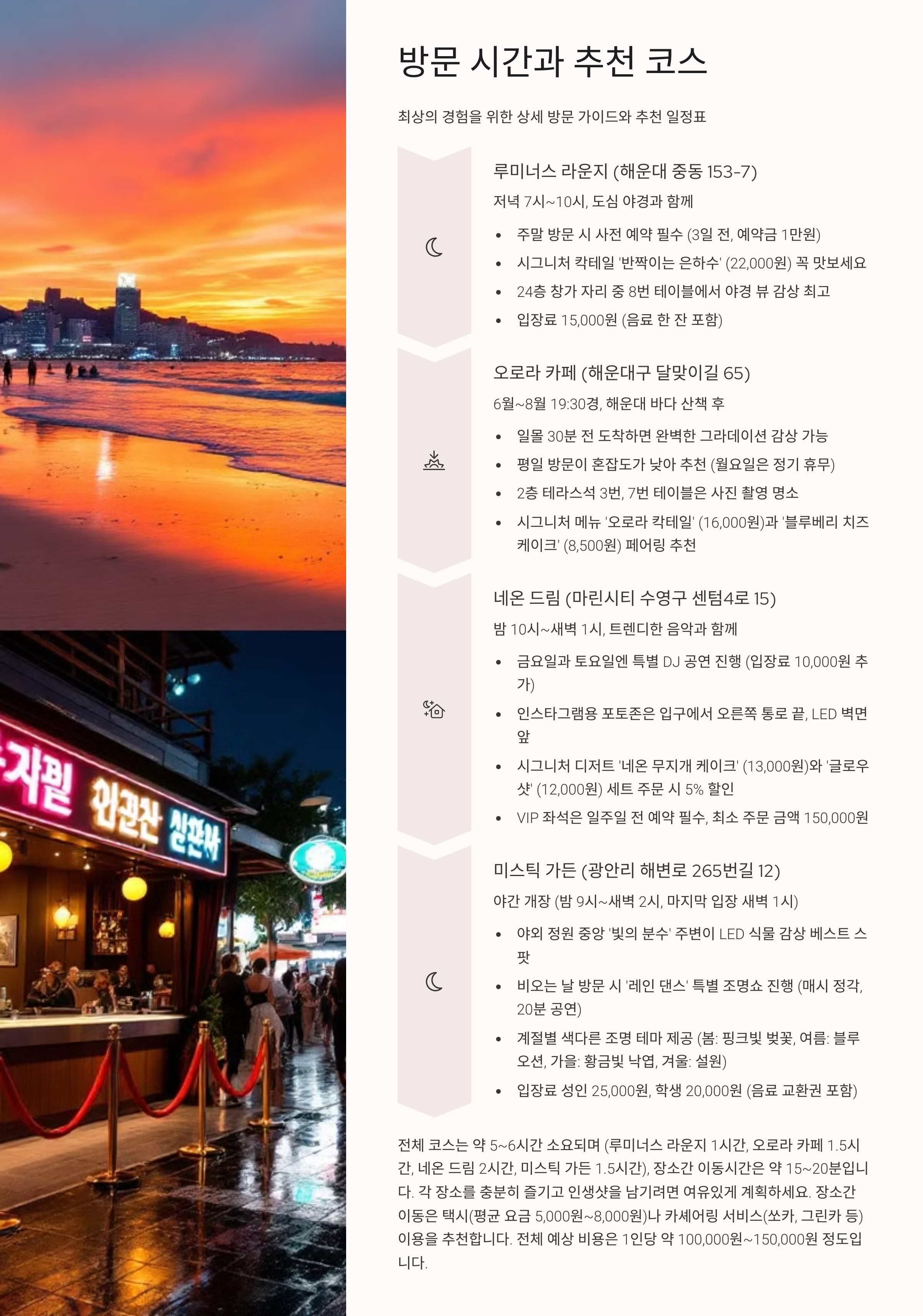 이색적인 공간을 방문할 때는 ‘언제 가느냐’도 중요합니다. 같은 장소라도 낮과 밤의 분위기가 완전히 다를 수 있기 때문이죠. 최적의 방문 시간과 추천 코스를 미리 알아두면 더욱 특별한 경험을 할 수 있습니다.