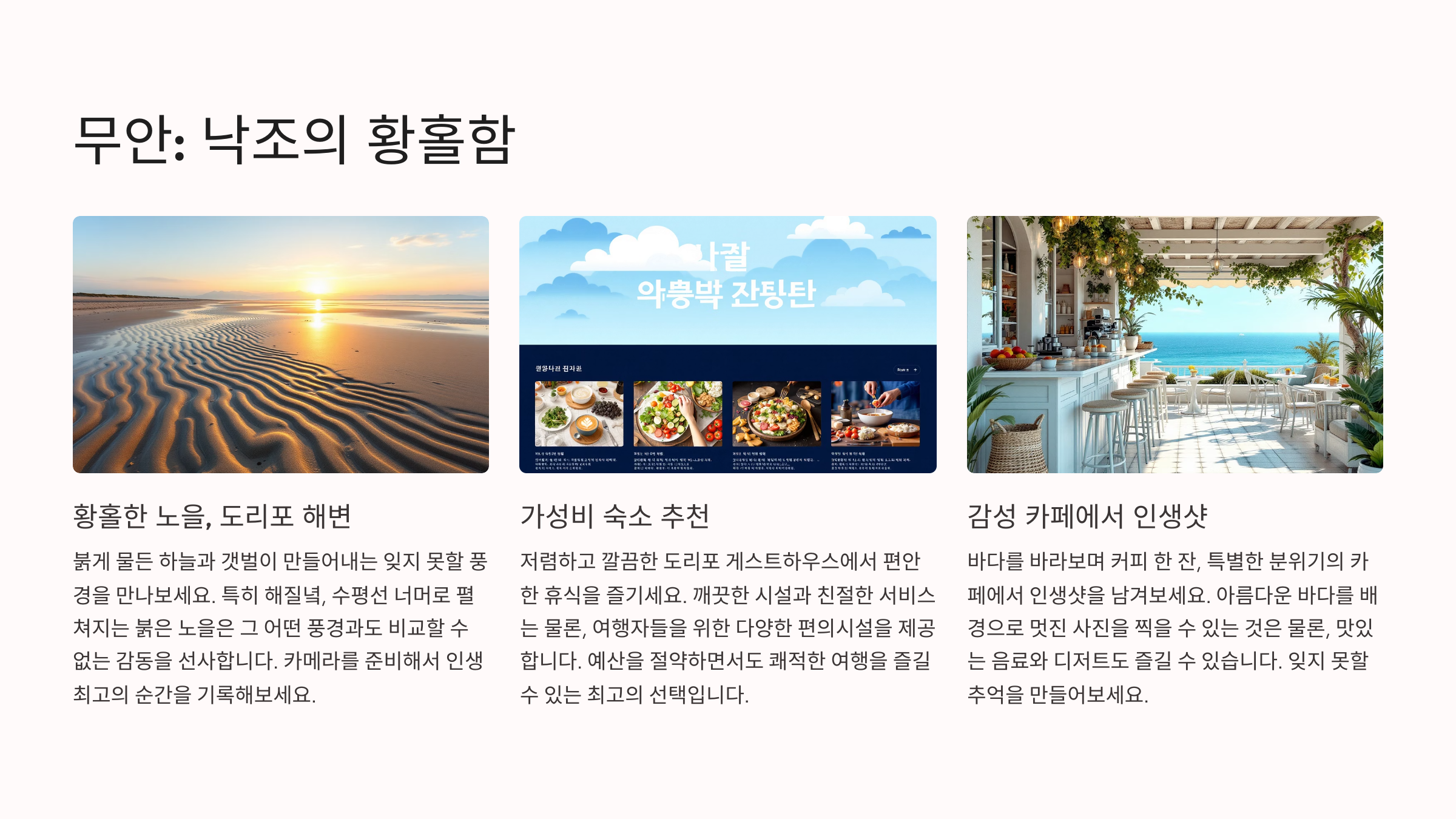 무안: 낙조의 황홀함과 감성카페 여행