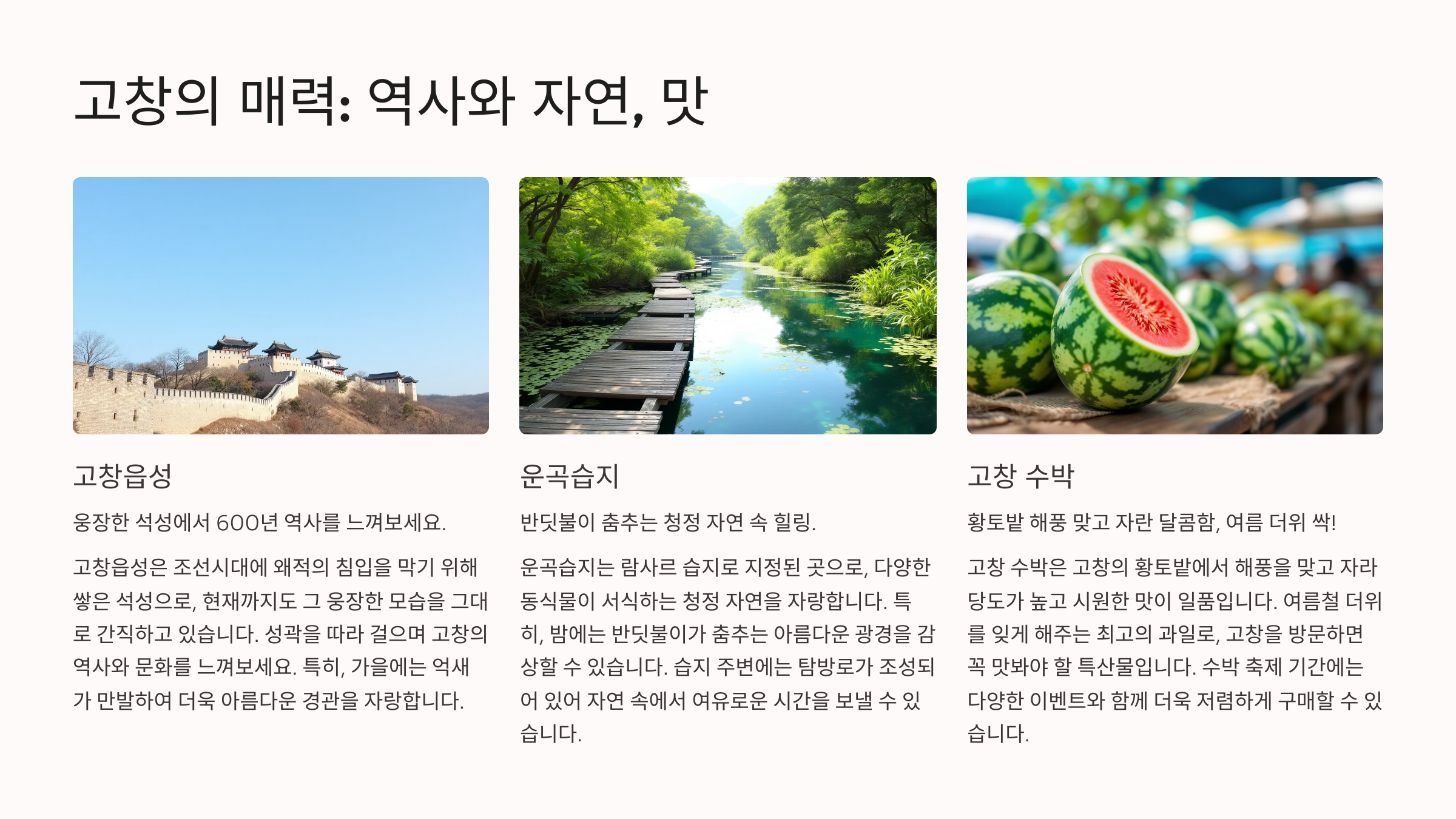 전북 고창은 전통과 자연, 두 가지를 모두 경험할 수 있는 독특한 여행지입니다.