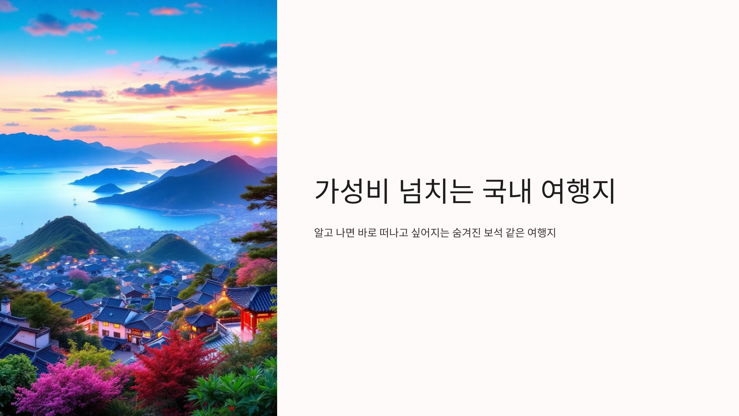 그래서 오늘은 제가 직접 다녀오거나 현지 지인에게 들은 진짜 가성비 좋은 국내 여행지를 공유해보려고 해요.