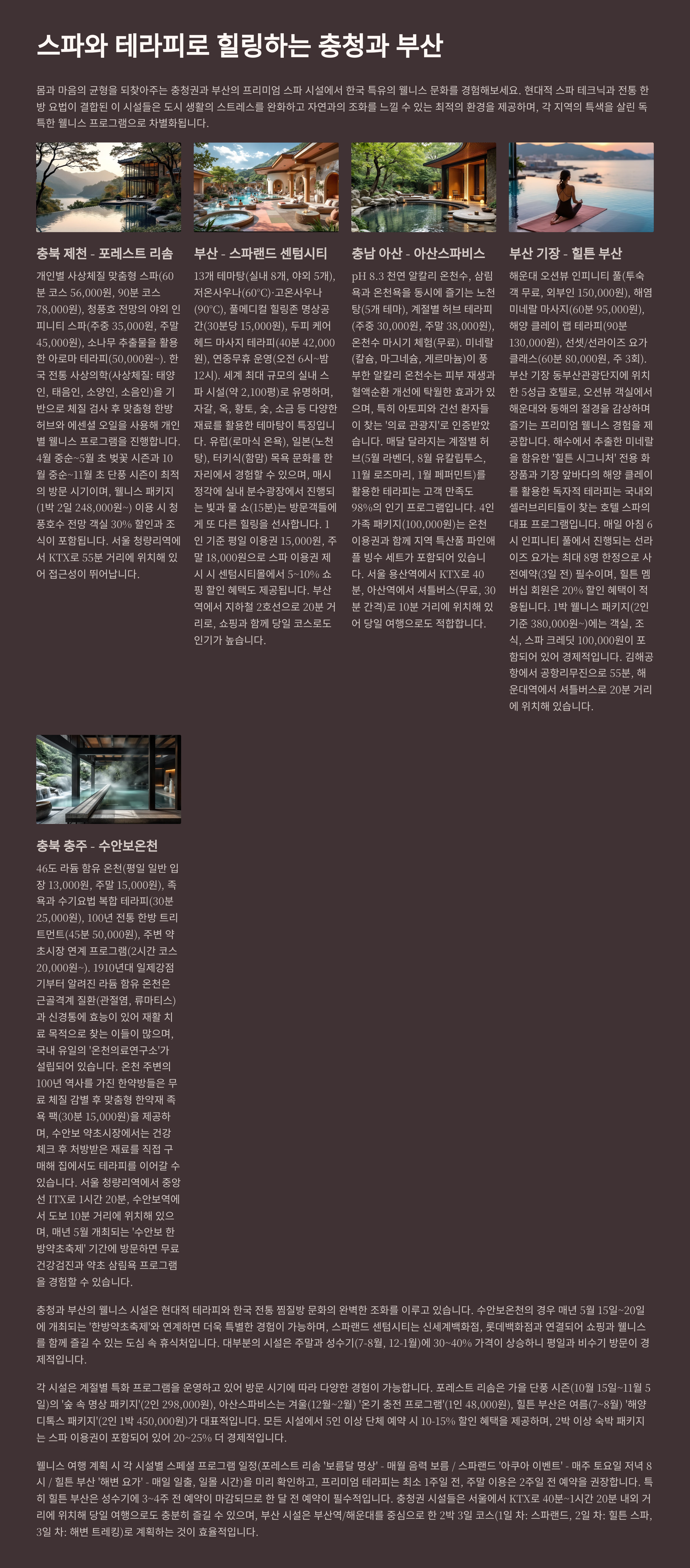 | 부산 | 스파랜드 센텀시티 | 테마탕+사우나+찜질방 복합 웰니스 |