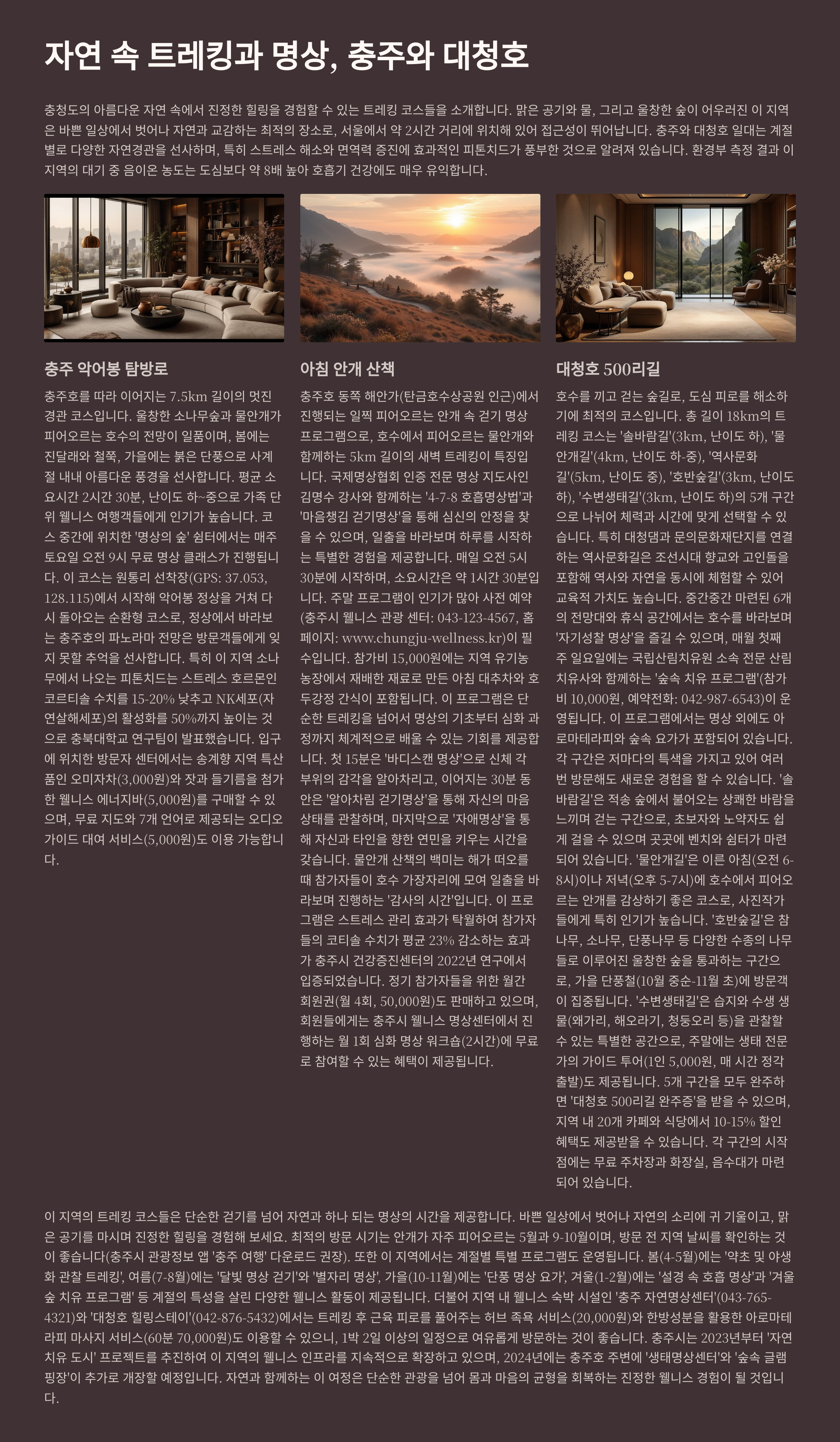 자연 속 트레킹과 명상, 충주와 대청호