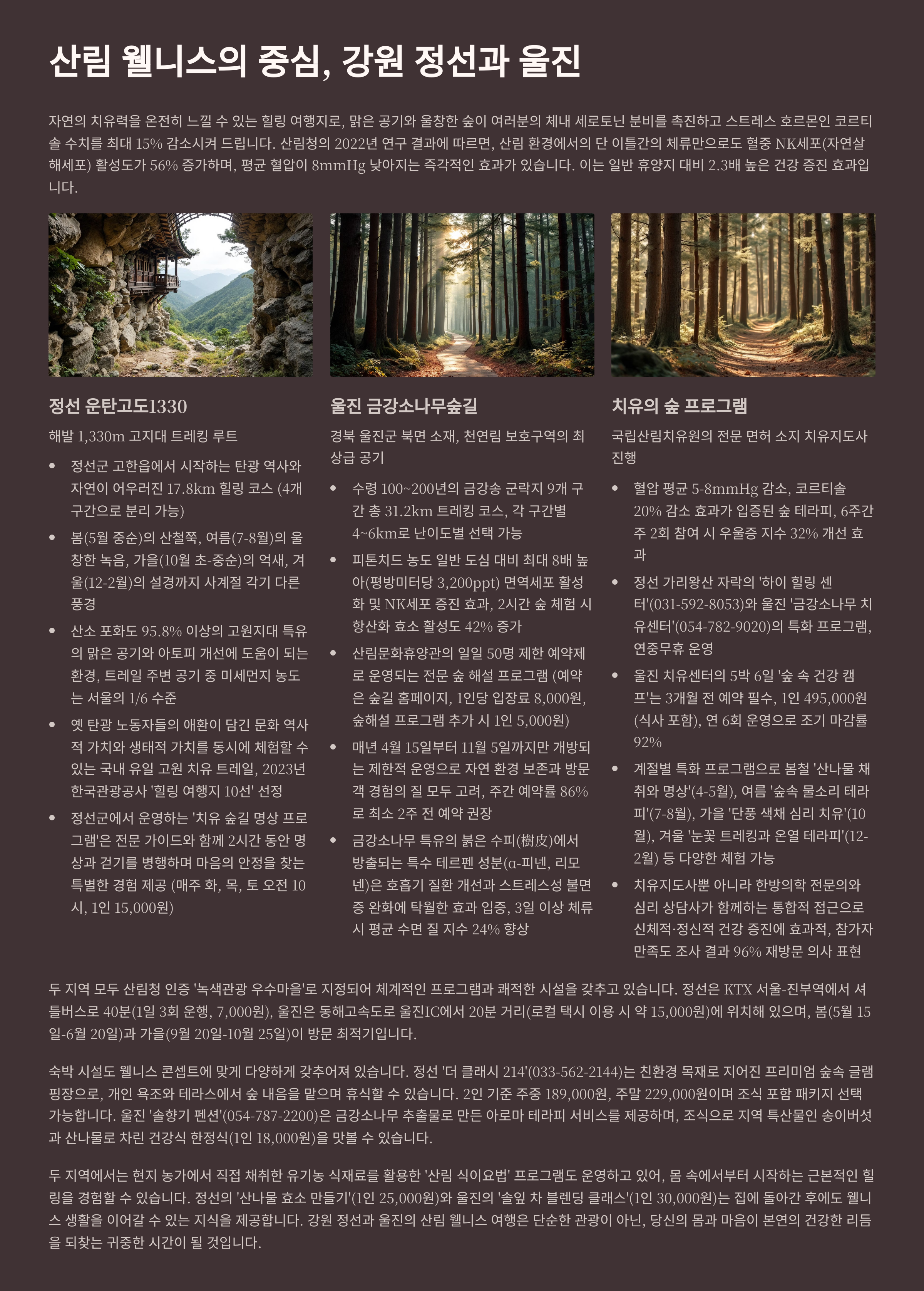 산림 웰니스의 중심, 강원 정선과 울진