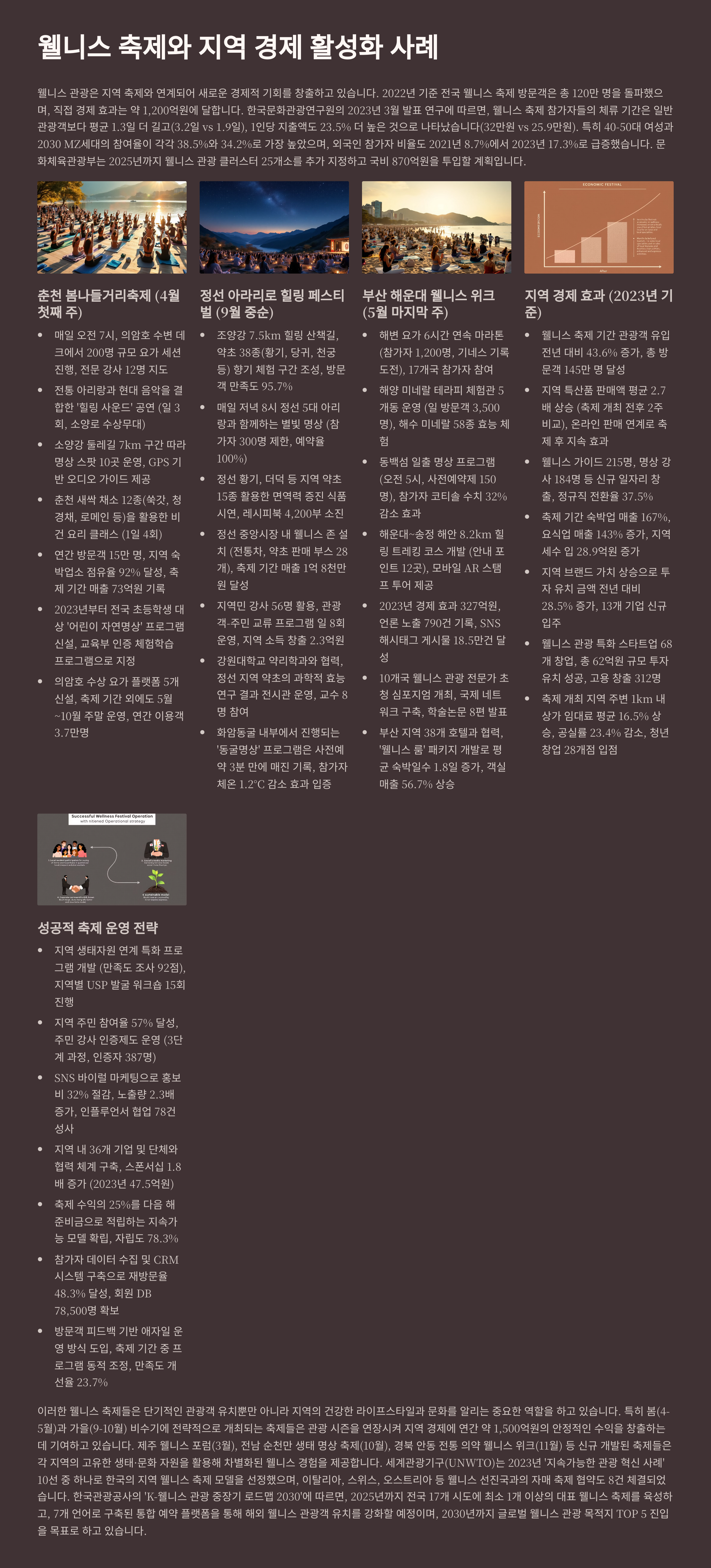 2025년에는 단순 체험을 넘어 지역과 결합된 웰니스 축제도 속속 등장하고 있어요.