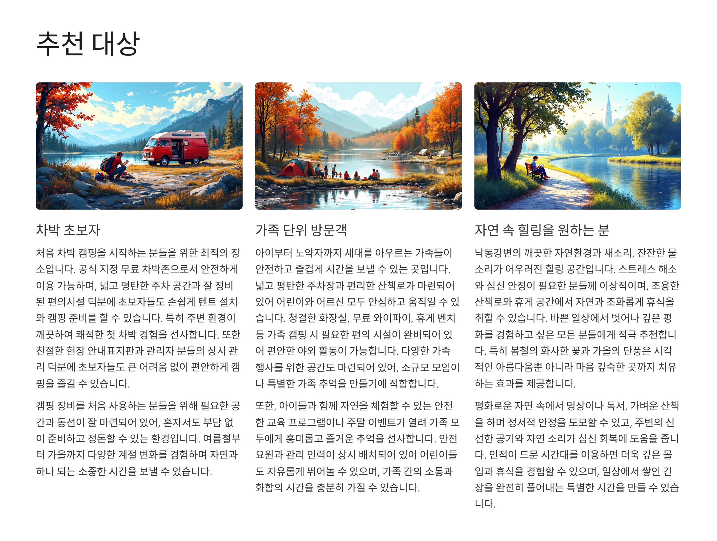 - 초보 차박러: 공식 지정 구역이라 안심하고 첫 차박 도전 가능