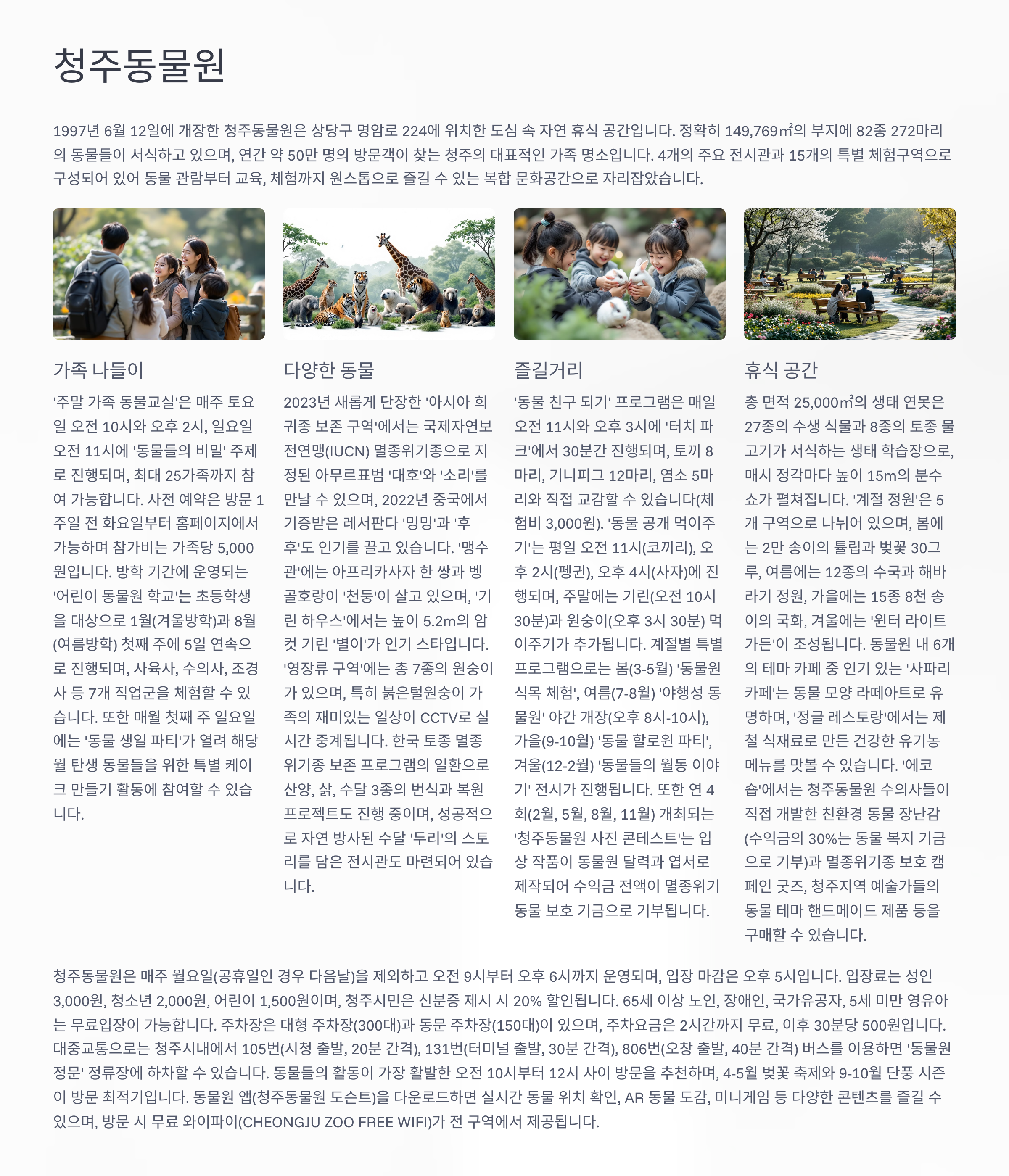 아이들과 함께하기 좋은 장소로 다양한 동물과 즐길 거리가 많습니다.