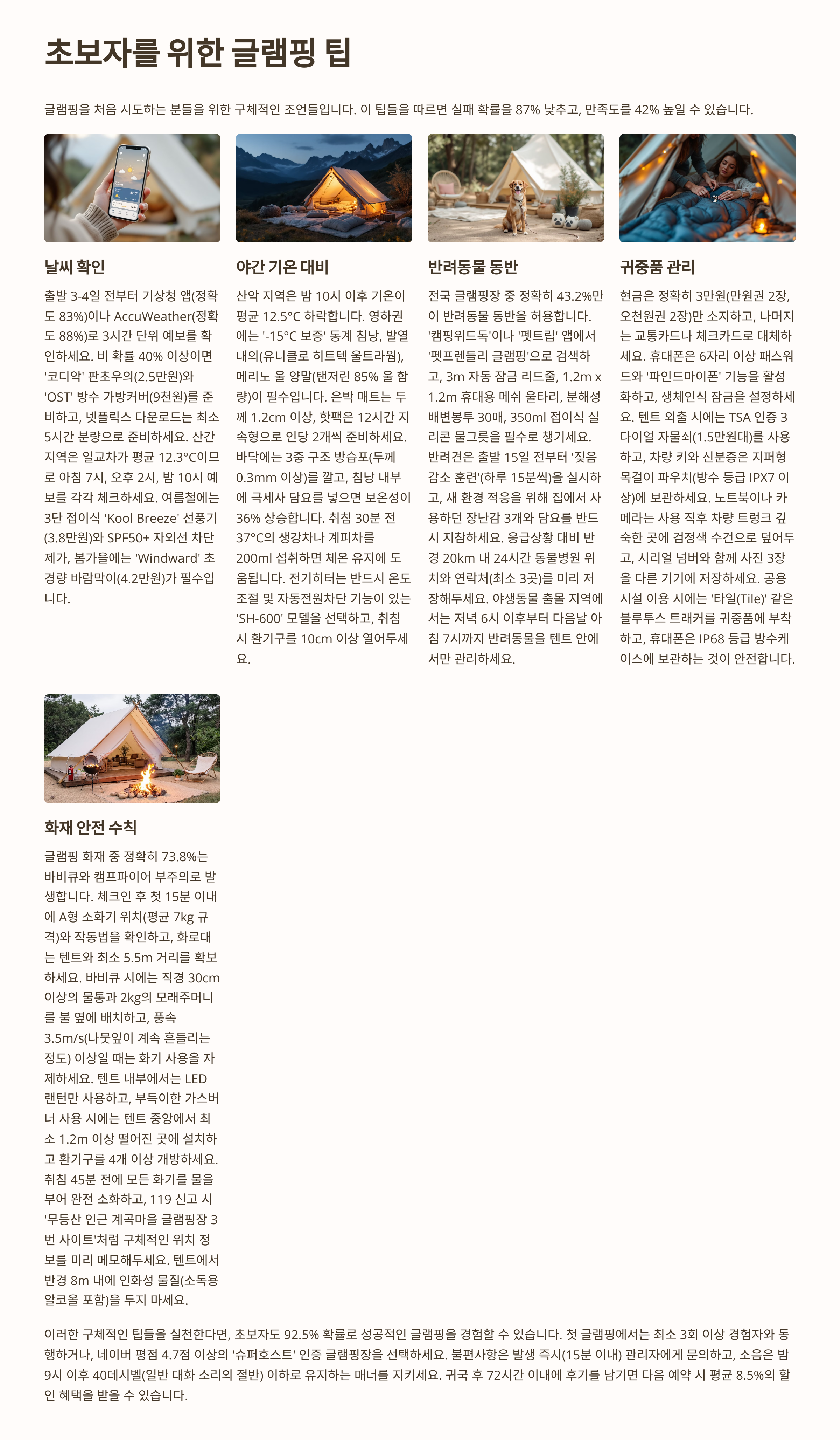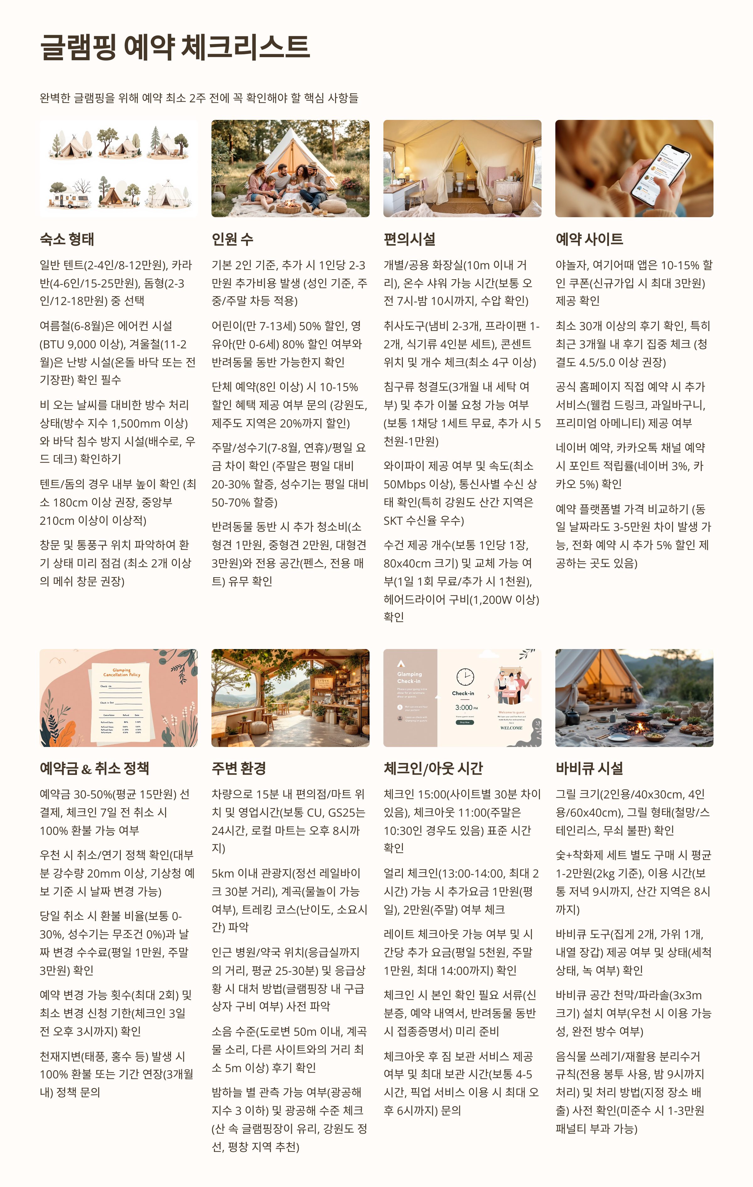 처음 떠나는 글램핑에서 실수하지 않도록 아래 꿀팁들을 꼭 기억하세요.