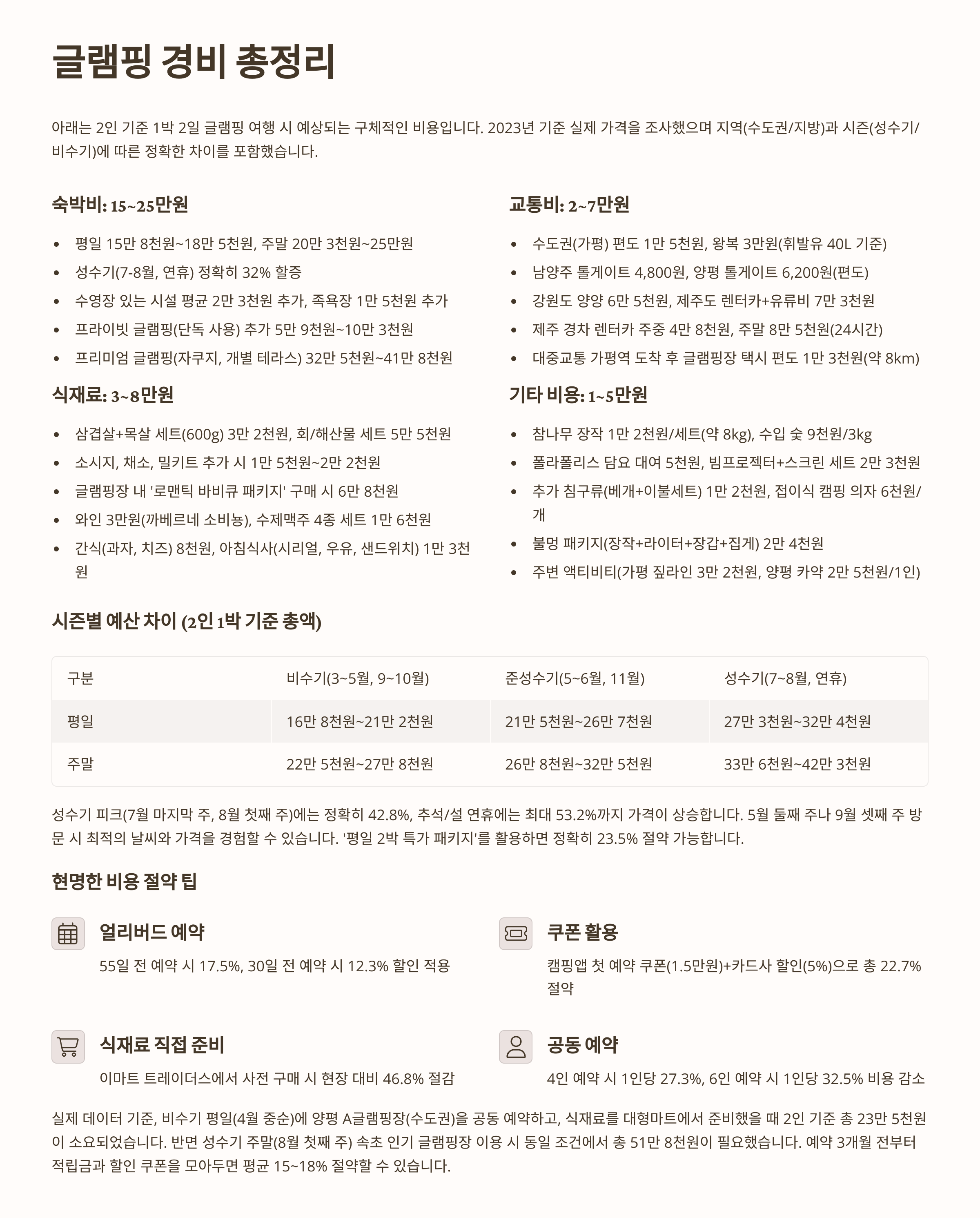 글램핑 경비 총정리 (숙박, 식비, 기타)