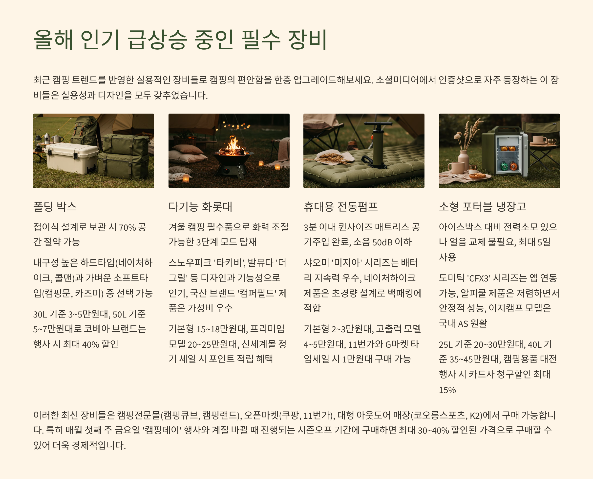 - 대형마트 캠핑 용품 할인 행사 시기 노리기