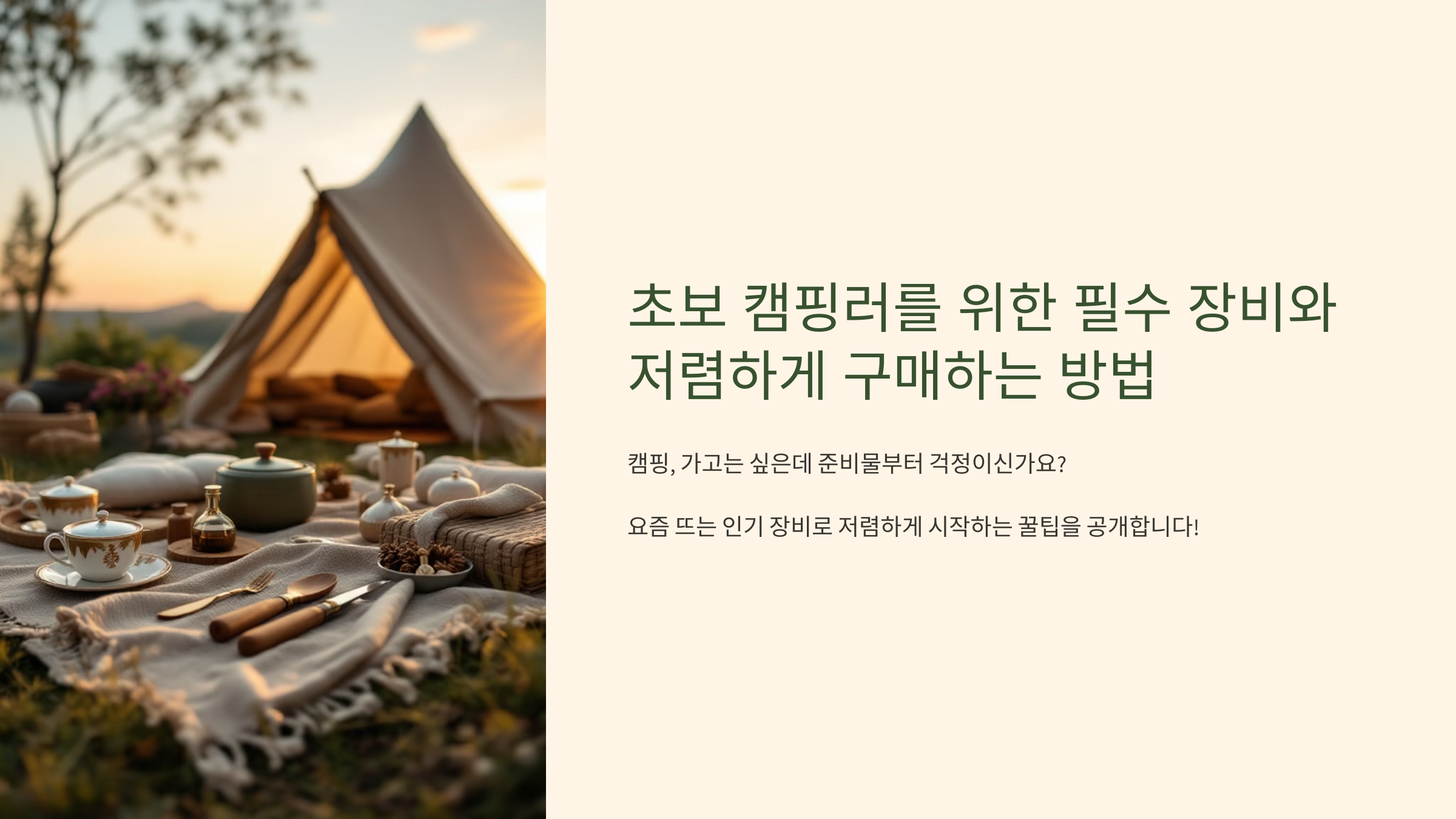 캠핑, 가고는 싶은데 준비물부터 걱정이신가요? 요즘 뜨는 인기 장비로 저렴하게 시작하는 꿀팁을 공개합니다!