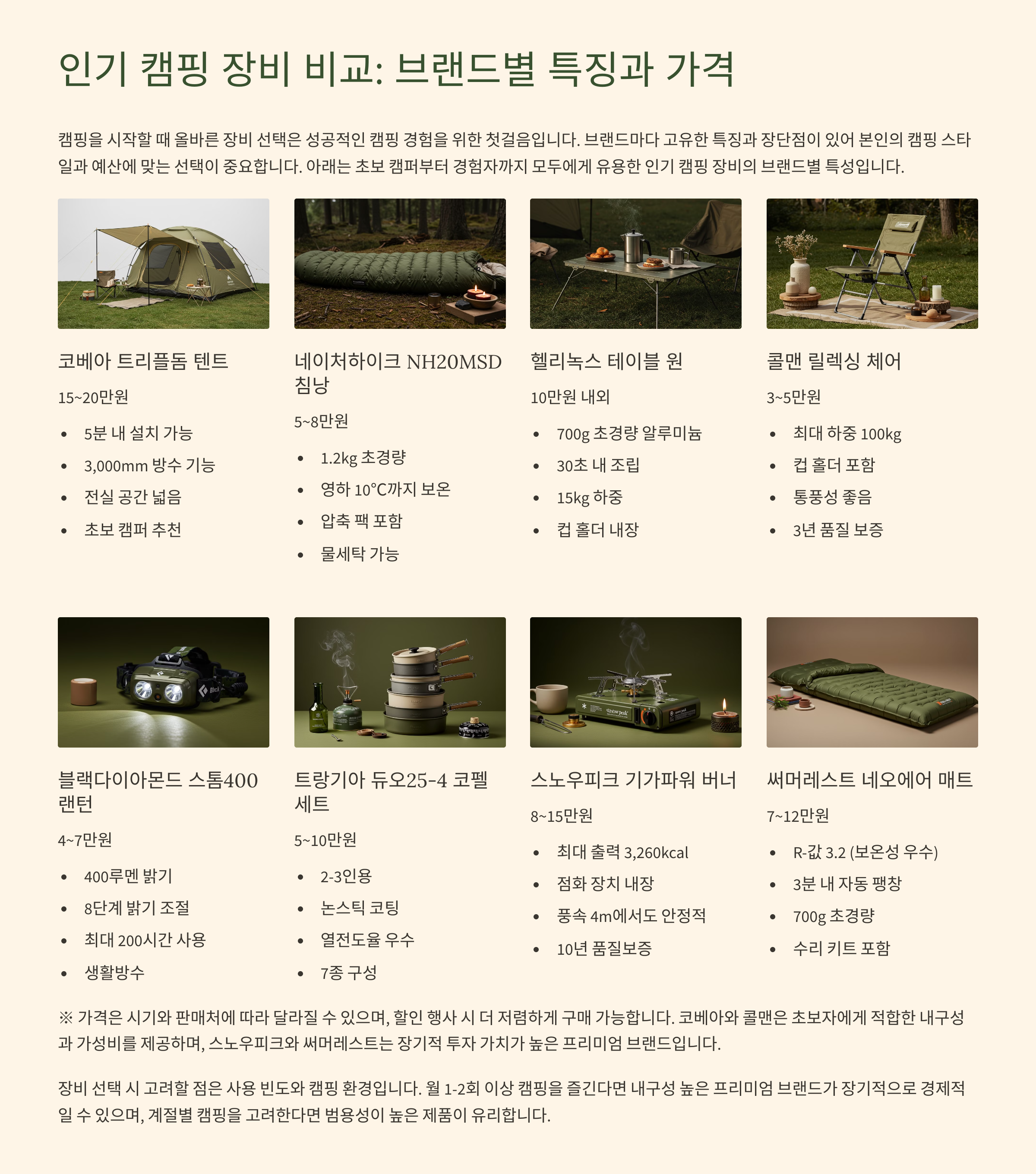 인기 캠핑 장비 비교: 브랜드별 특징과 가격